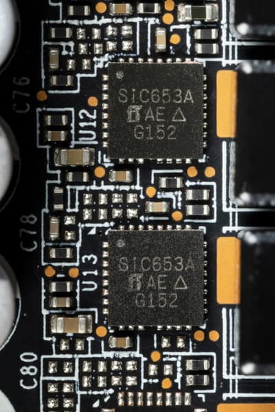 В преобразователе питания ядра у карты Palit применены микросхемы DrMOS — SiC653A (Vishay) с максимально возможным током 50 А.