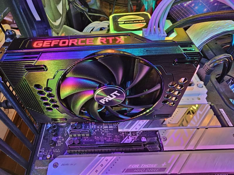 Выбор режимов невелик, однако это типично для бюджетных карт Palit. Выделенного контроллера для управления подсветкой у этой карты нет, но ряд производителей материнских плат уже освоили управление подсветками таких карт через свои утилиты. В частности, Asus Armoury Crate определяет эту видеокарту и позволяет синхронизировать работу ее подсветки с материнскими платами компании.