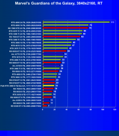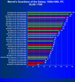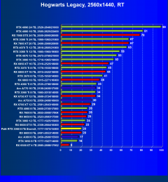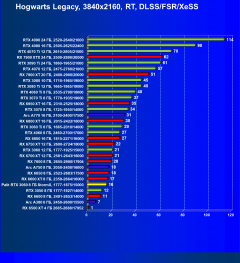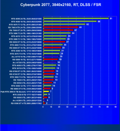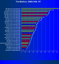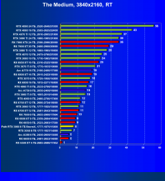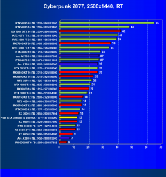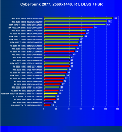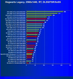 Результаты тестов со включенной аппаратной трассировкой лучей и/или DLSS/FSR/XeSS в разрешениях 1920×1080, 2560×1440 и 3840×2160