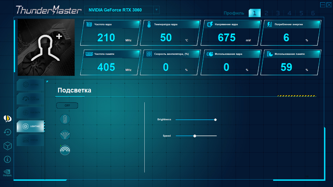 Управление подсветкой возложено на ту же утилиту ThunderMaster.