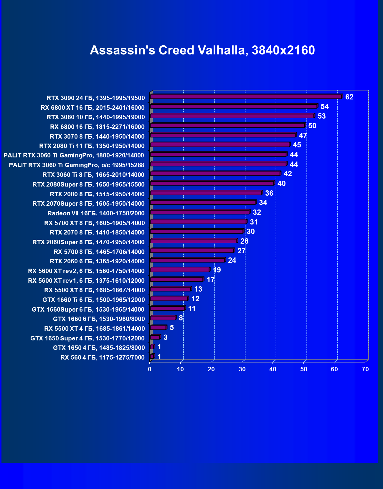 | 04 | Palit RTX 3060 Ti GamingPro, 1800—1920/14000 | 30 | 152 | 50 000 |