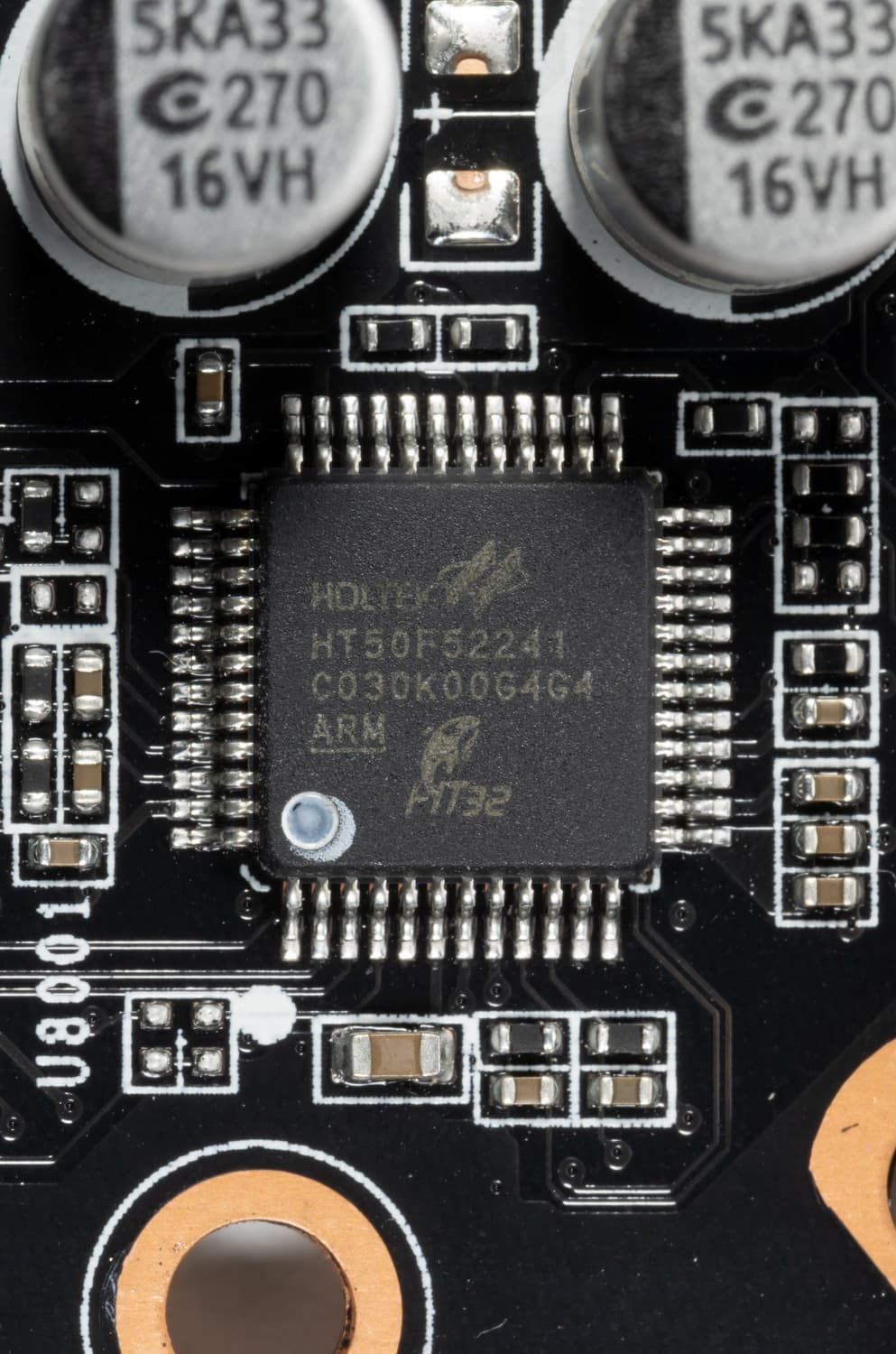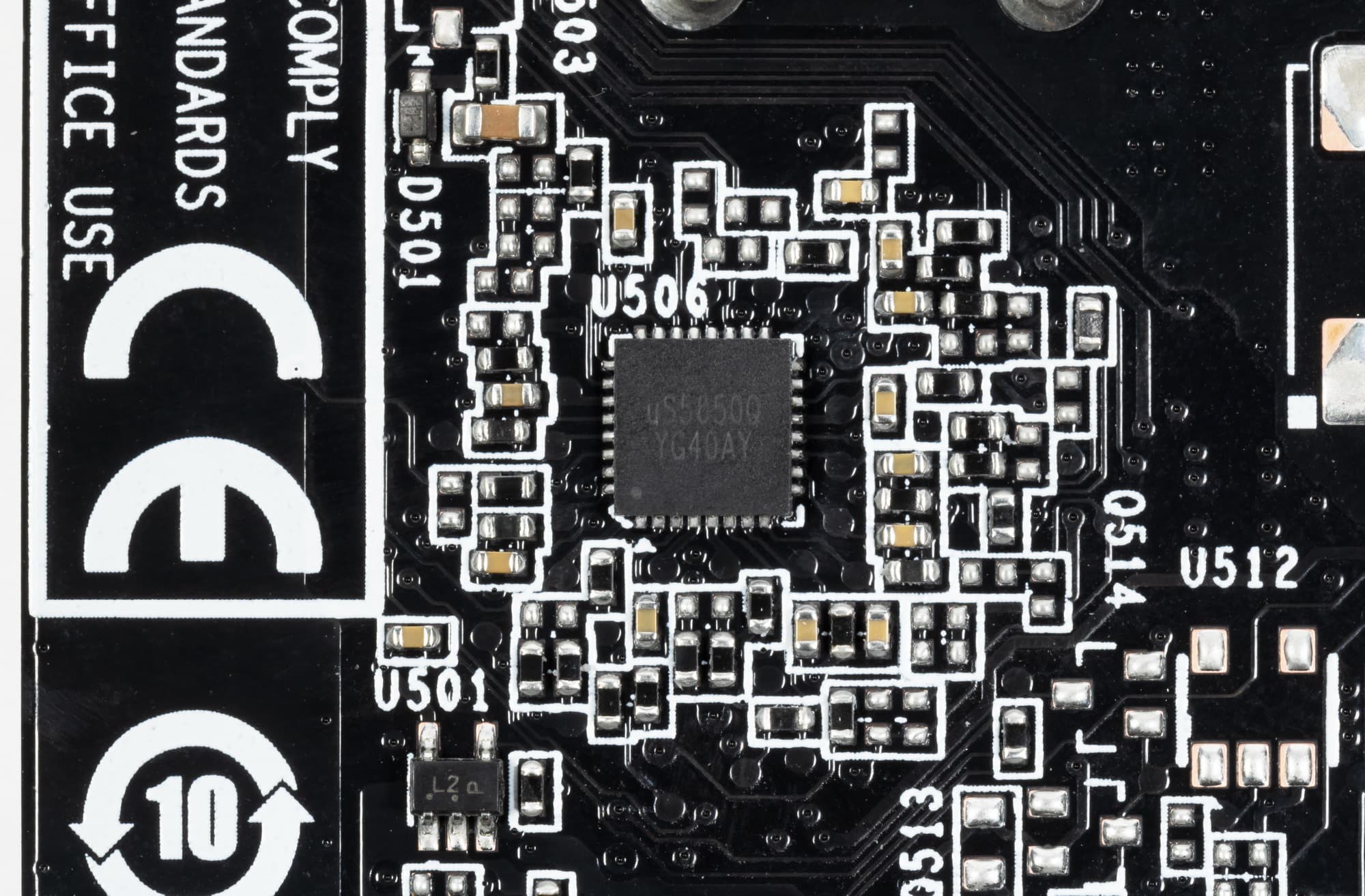 Также имеется контроллер uS5650Q (uPI Semiconductor), отвечающий за мониторинг (отслеживание напряжений и температуры). Он тоже расположен на обороте печатной платы.