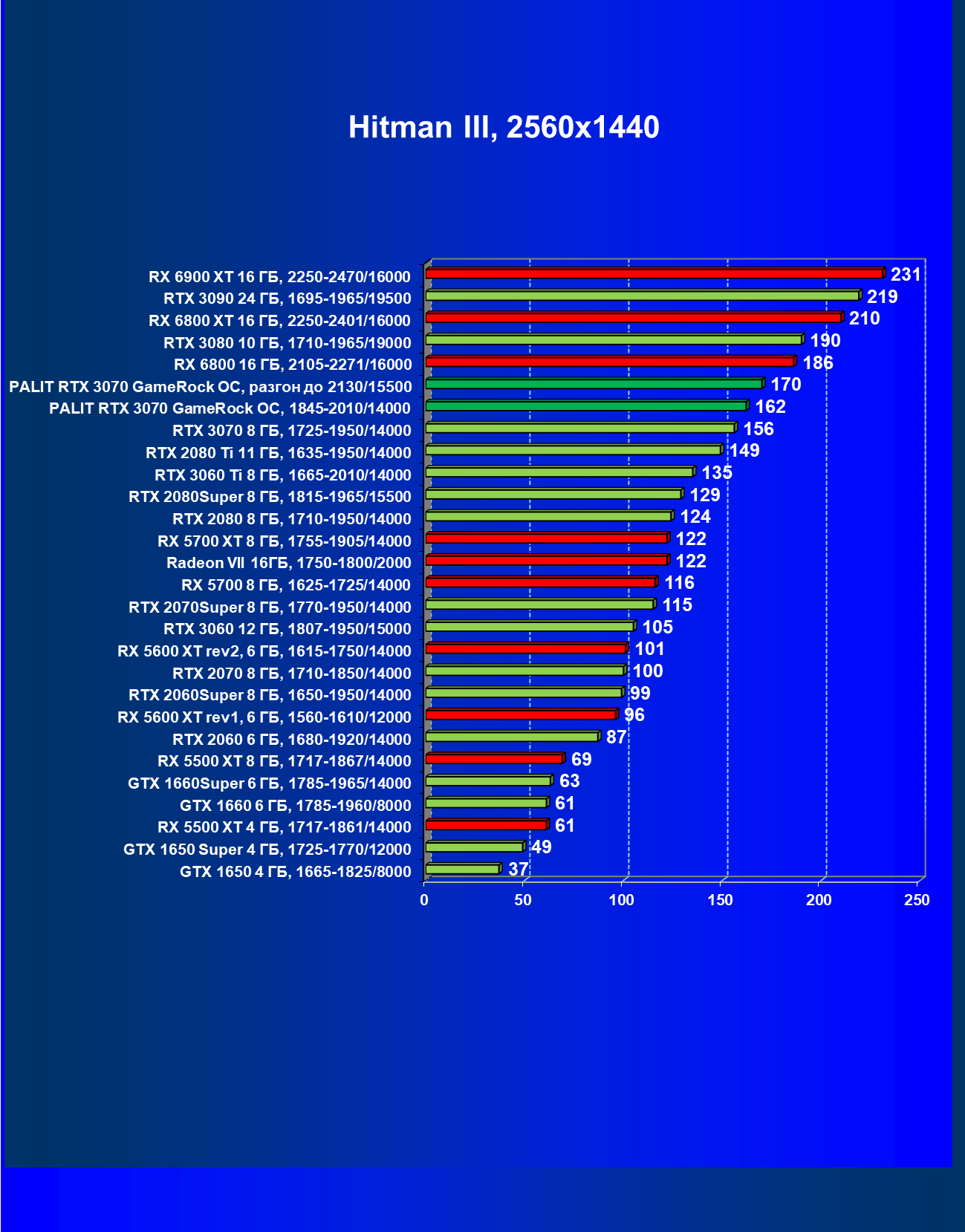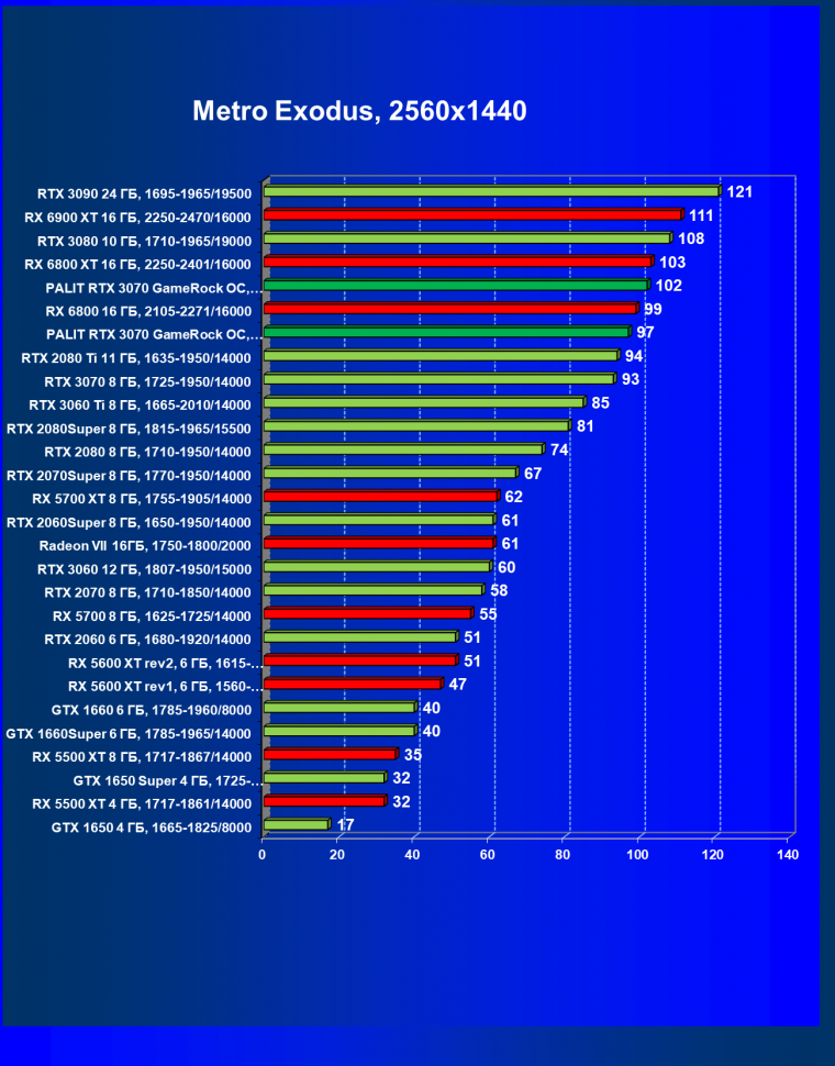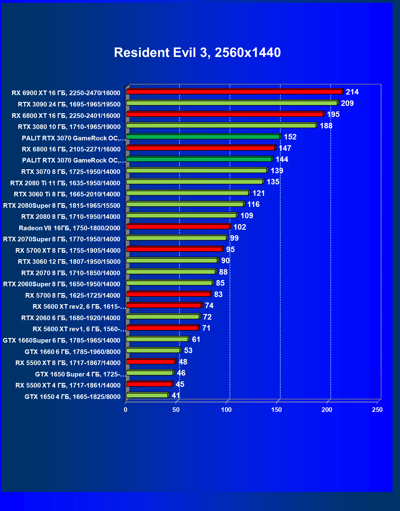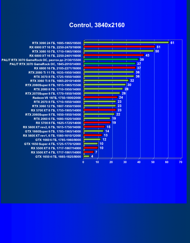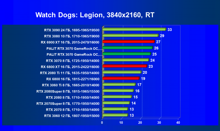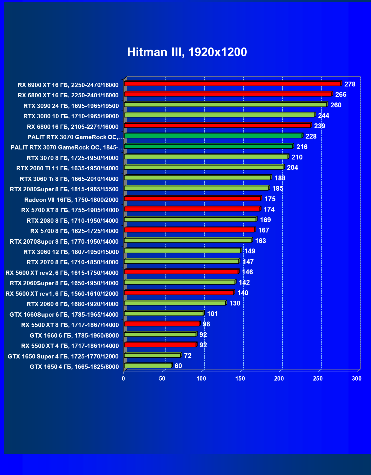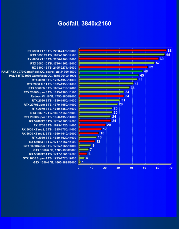 Всем интересующимся хорошо известно, что Radeon RX 6800 немного обходит GeForce RTX 3070 в играх с растеризацией без трассировки лучей. Небольшой фабричный разгон карты Palit не позволил ей догнать соперника, а вот с ручным разгоном карта уже заняла первое место в группе, обойдя Radeon RX 6800, который, кстати, уже можно найти дешевле, чем GeForce RTX 3070.