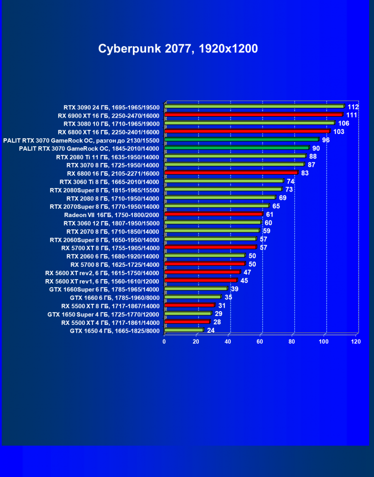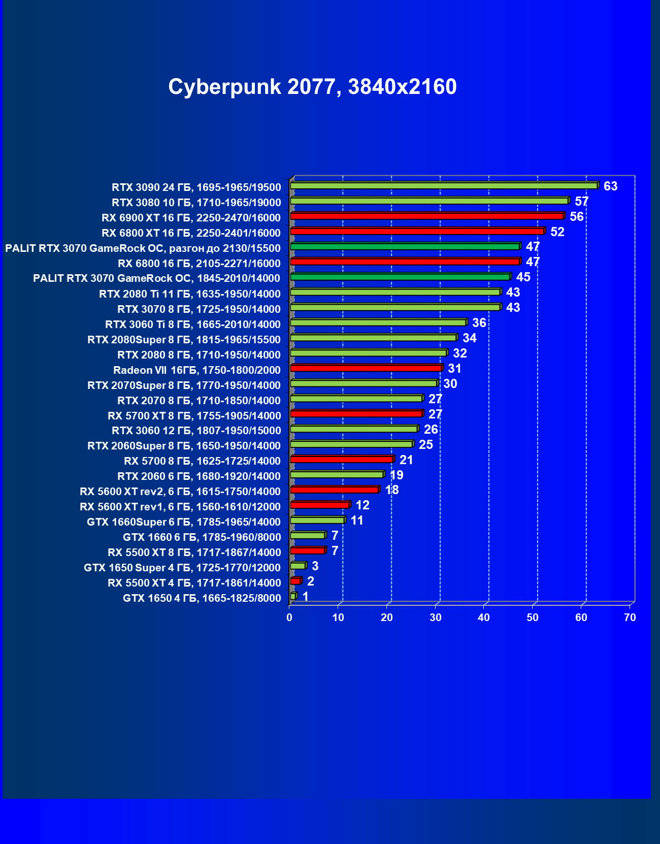 | 04 | Palit RTX 3070 GameRock OC, 1845—2010/14000 | 15 | 189 | 128 000 |