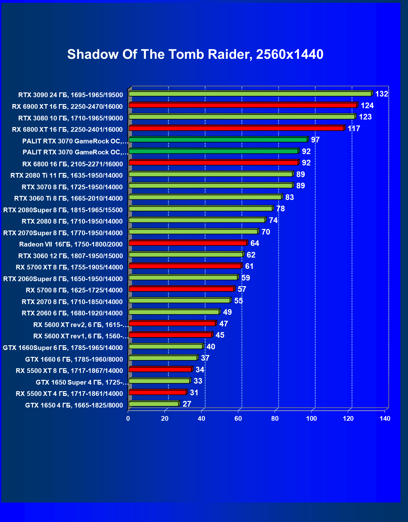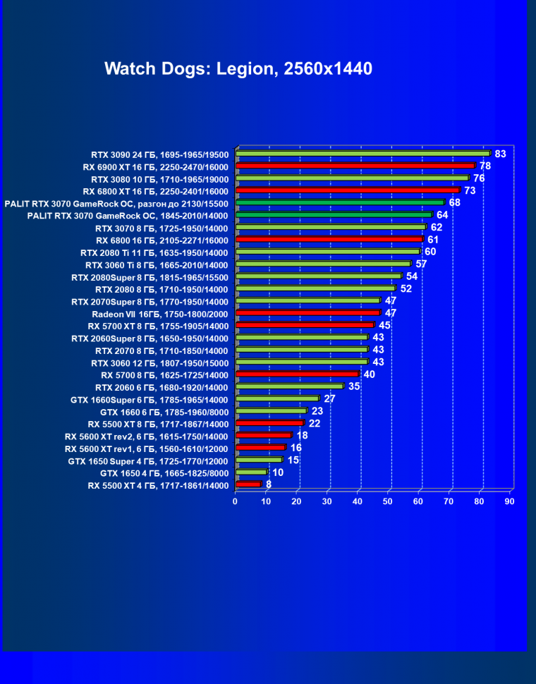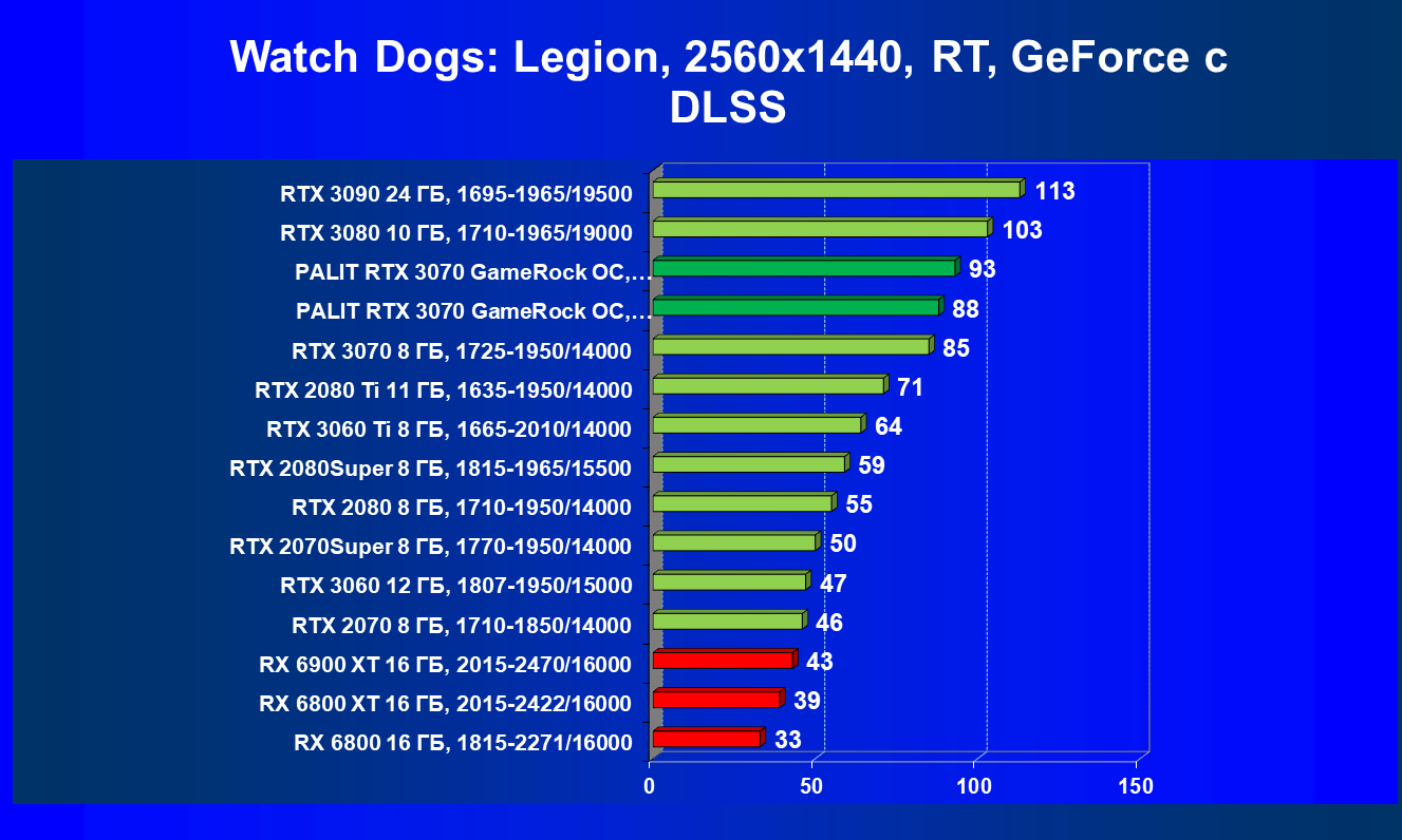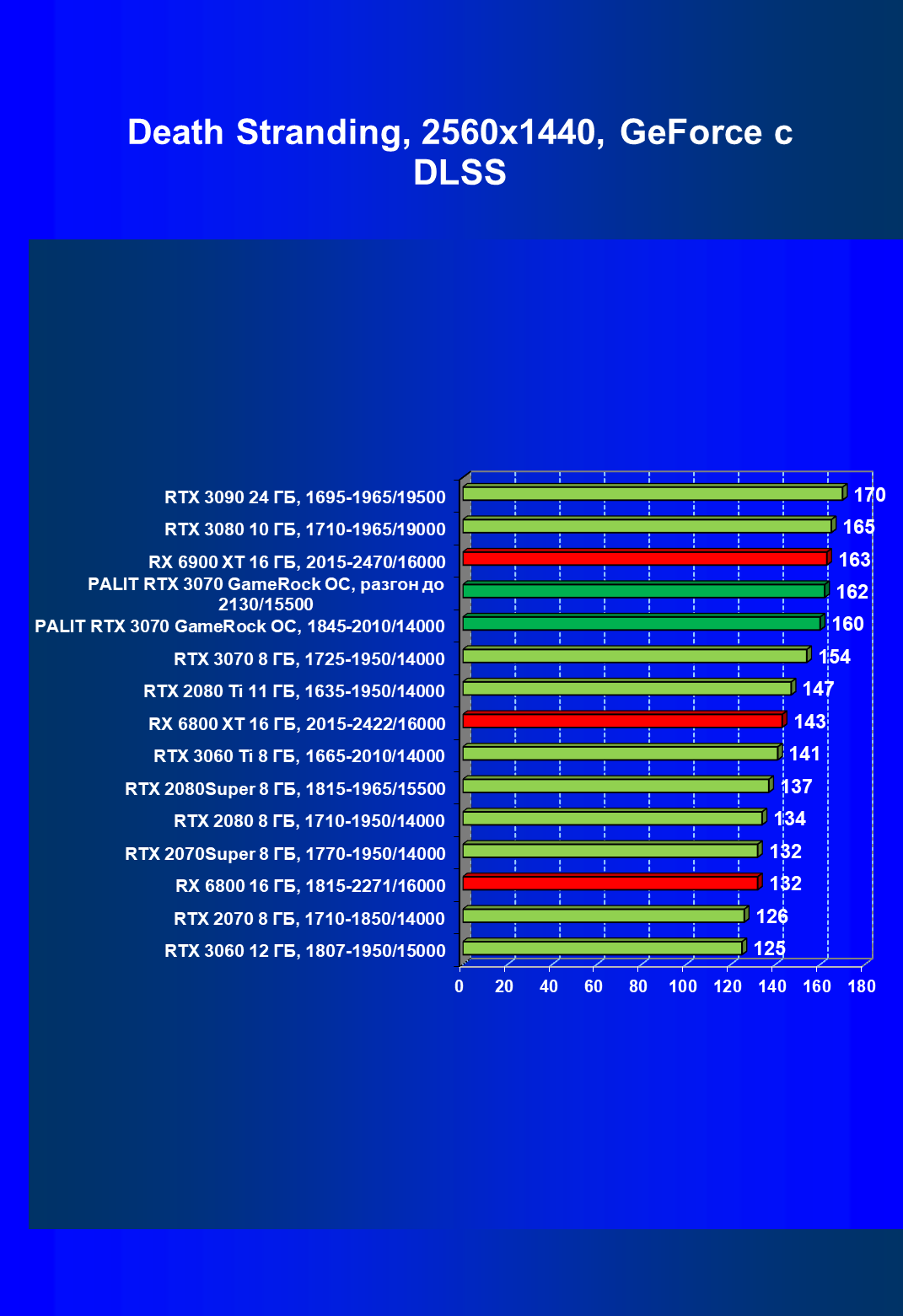 | 10 | Palit RTX 3070 GameRock OC, 1845—2010/14000 | 95 | 1215 | 128 000 |