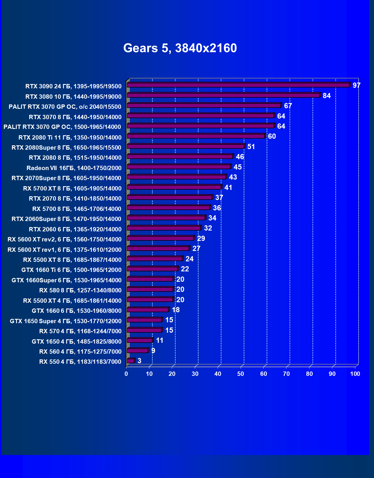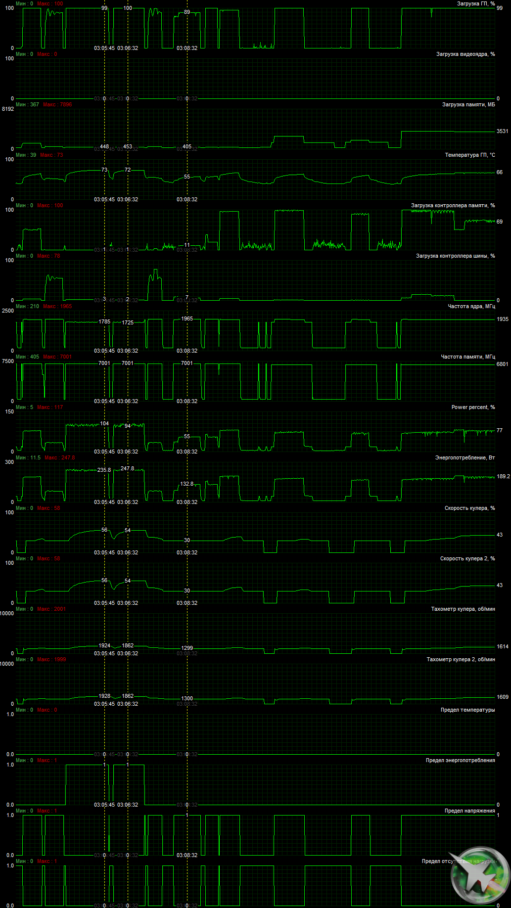 | 04 | RTX 3070 8 ГБ, 1440—1950/14000 | 613 | 3065 | 50 000 |