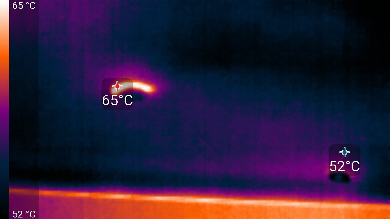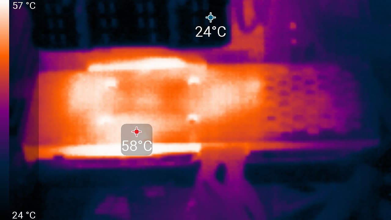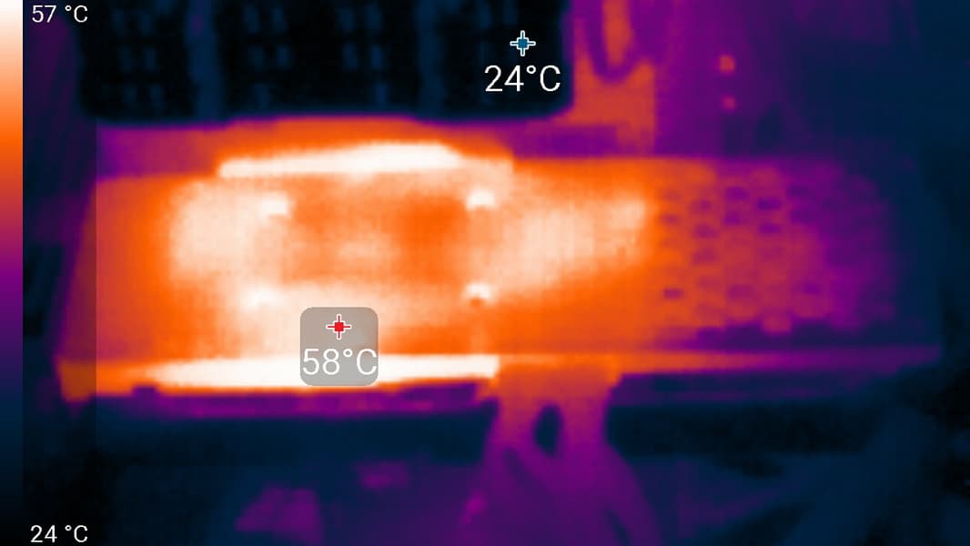 Максимальный нагрев наблюдался в районе преобразователей питания (как ядра, так и памяти).