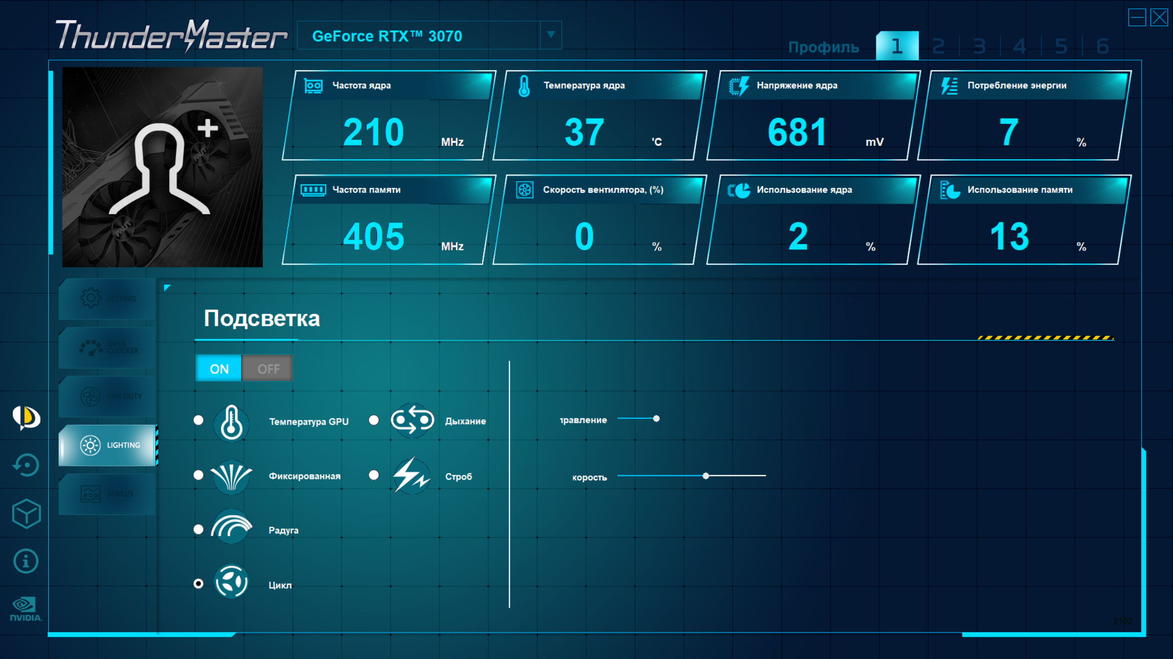Управление режимами подсветки, в том числе и ее отключением, осуществляется той же утилитой Thunder Master.