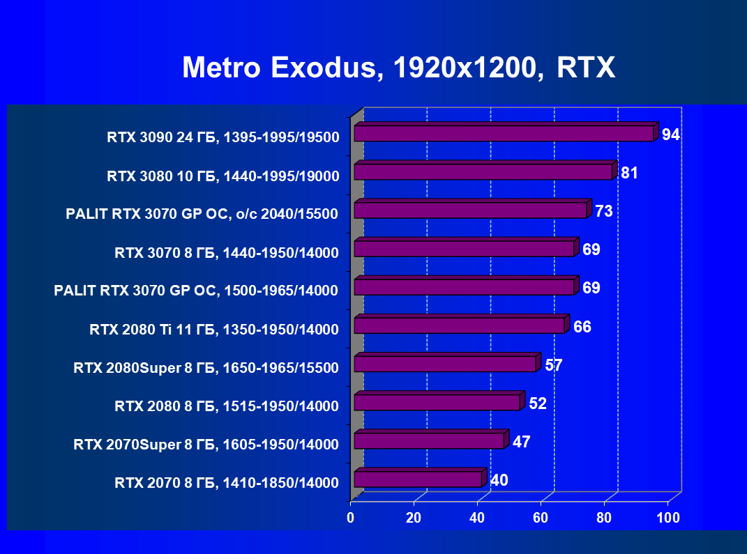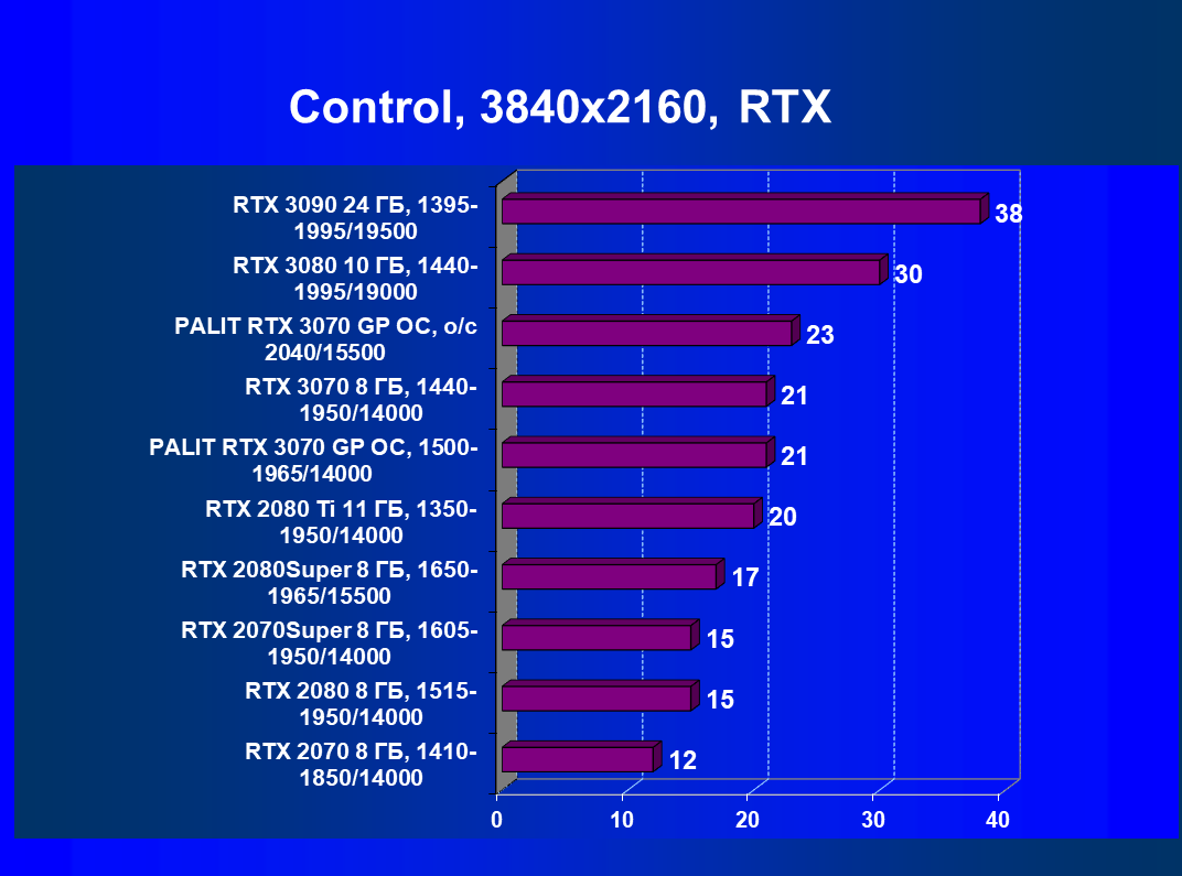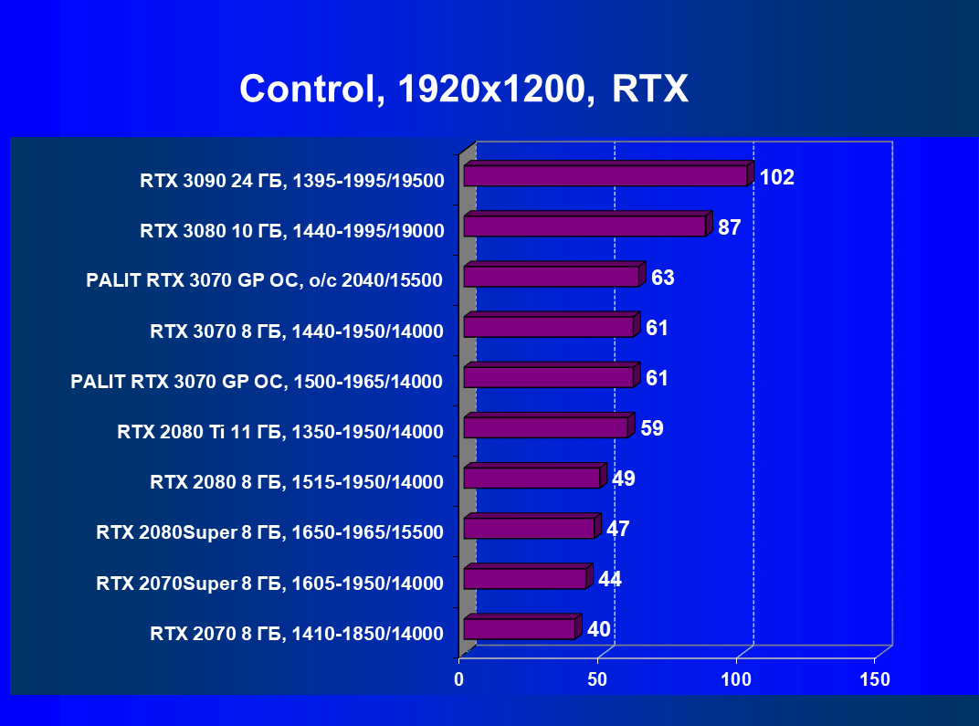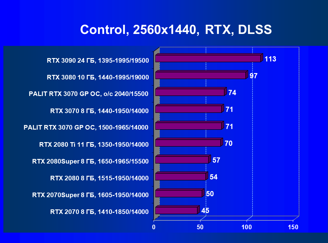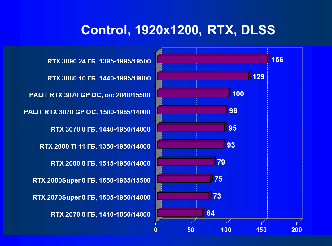 | 01 | Palit RTX 3070 GP OC, разгон до 2040/15500 | 644 | 3218 | 50 000 |