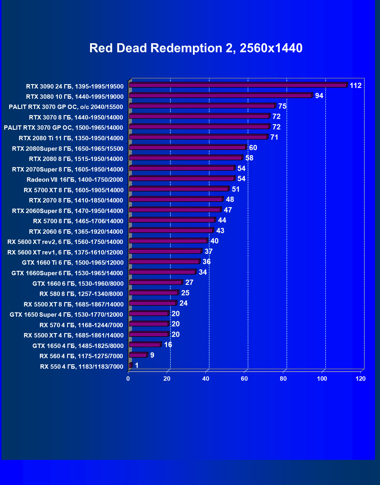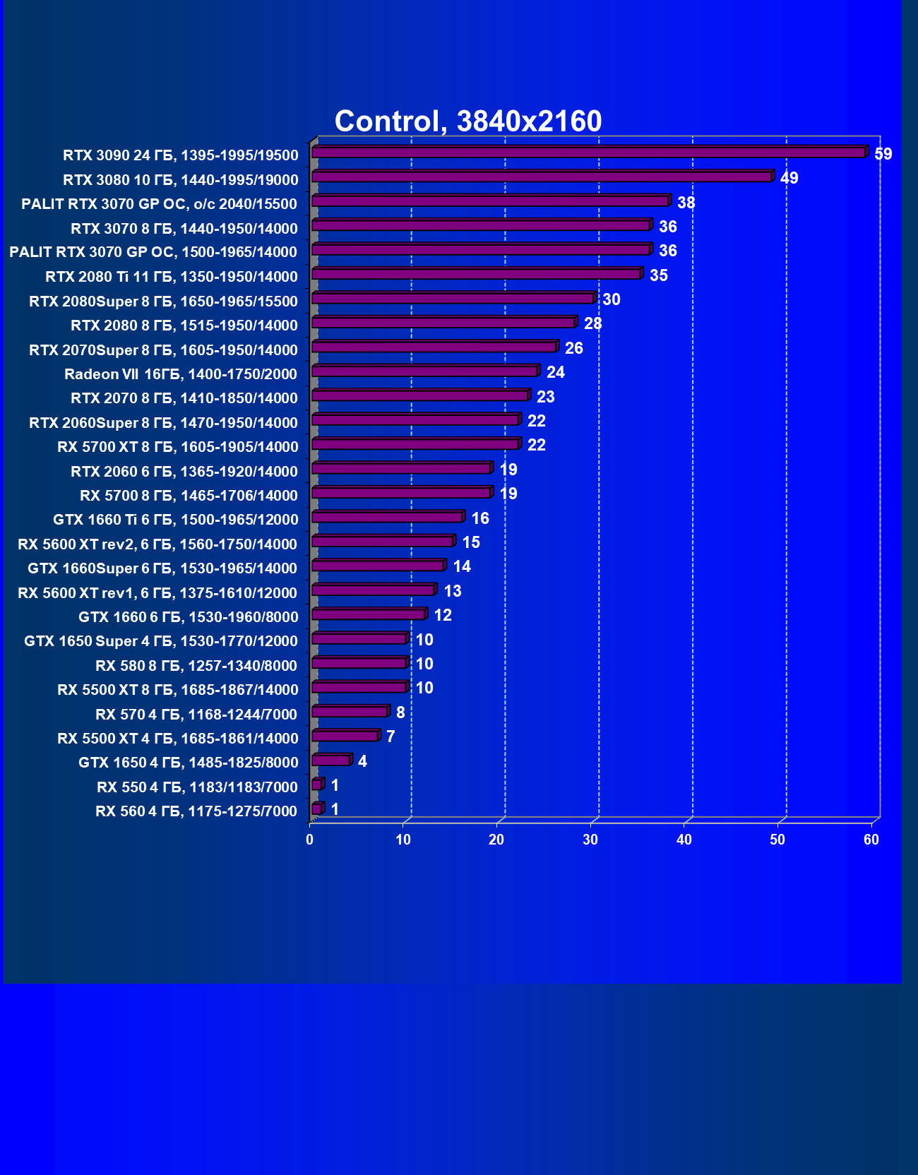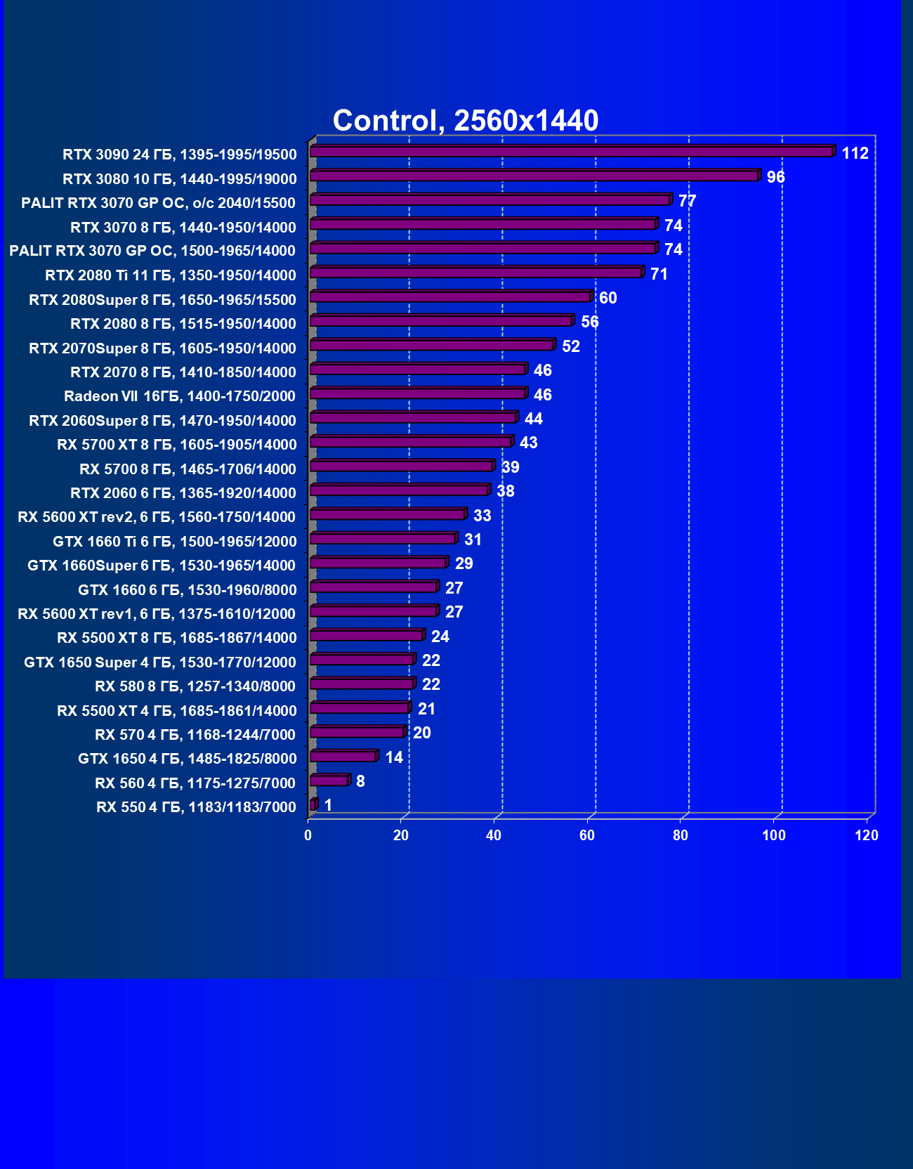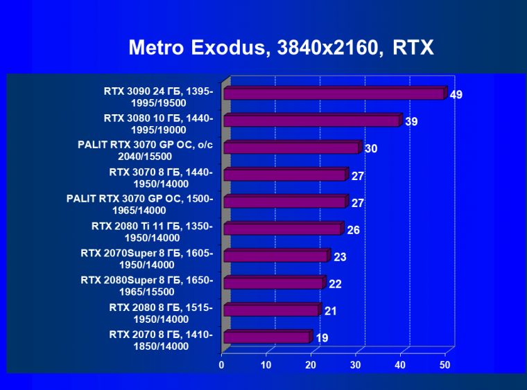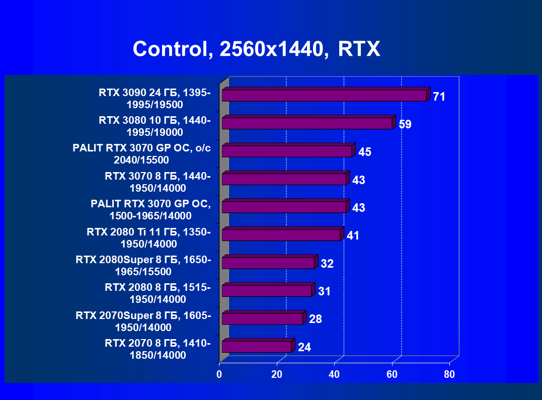| 01 | Palit RTX 3070 GP OC, разгон до 2040/15500 | 644 | 3218 | 50 000 |