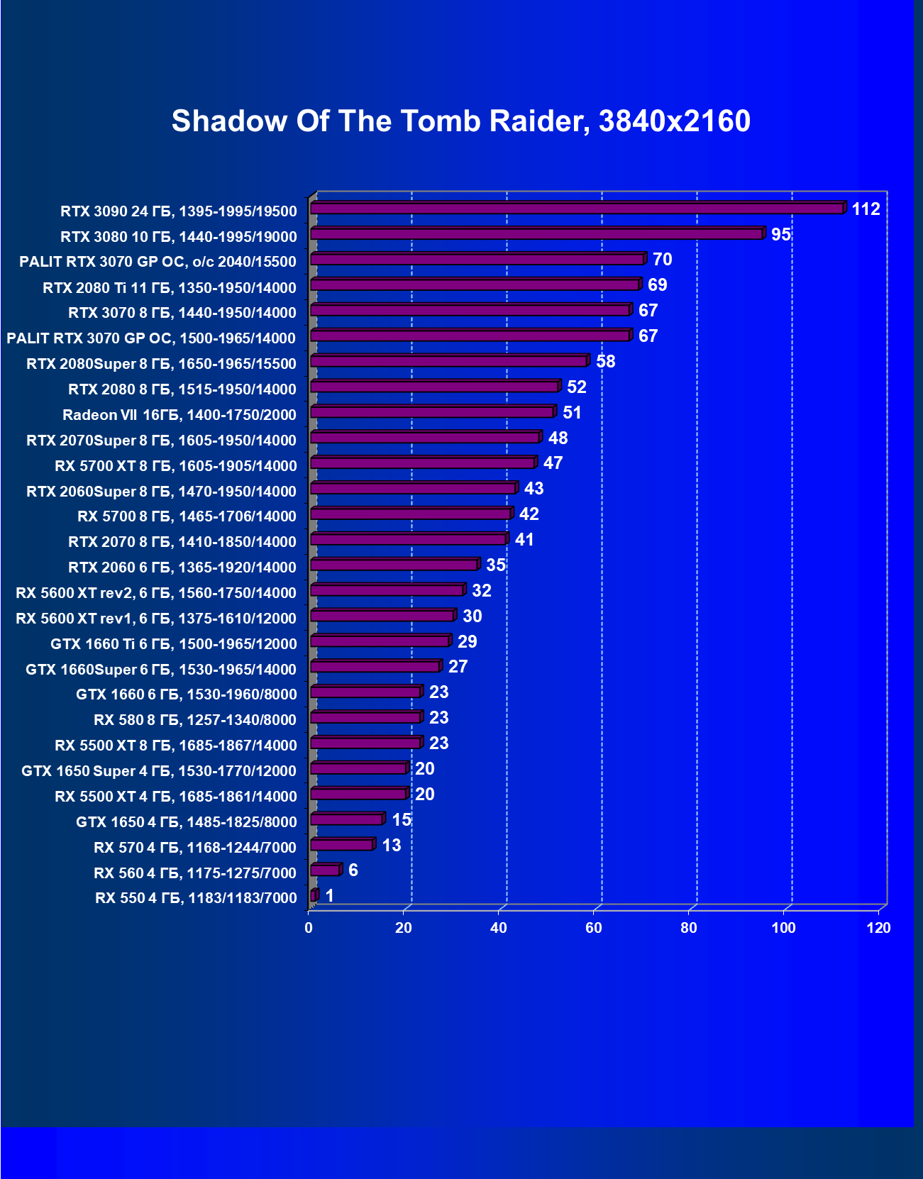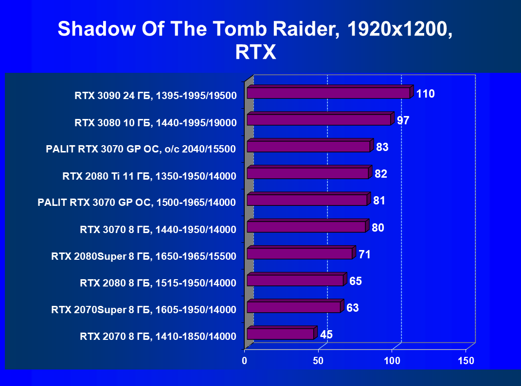 | 02 | RTX 3080 10 ГБ, 1440—1995/19000 | 617 | 4195 | 68 000 |