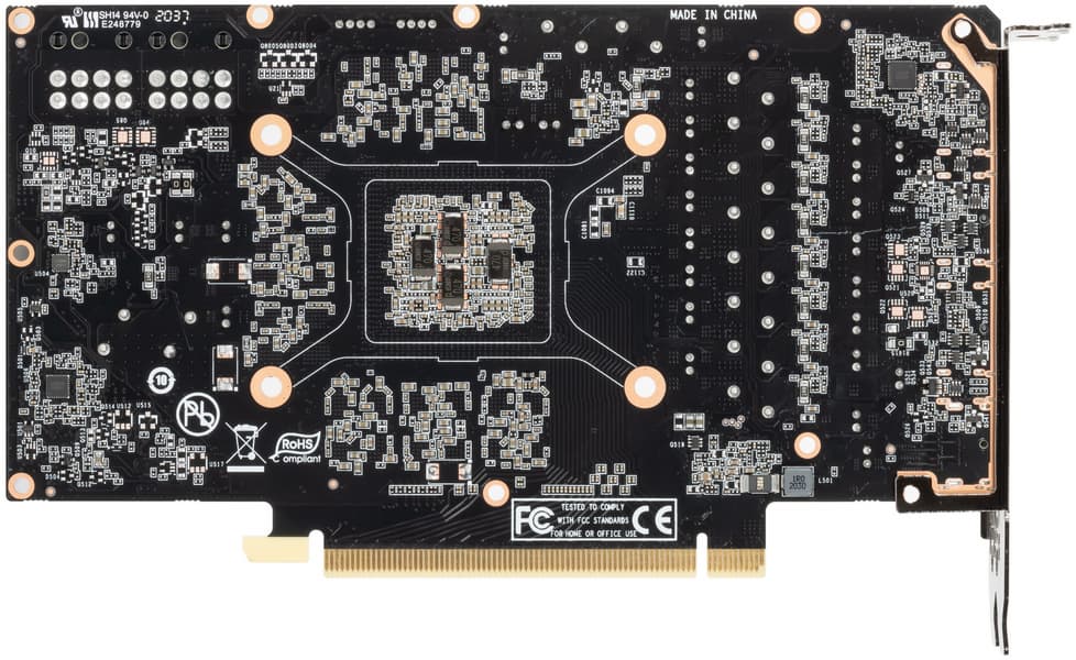 Напомним, что в Nvidia сделали два варианта дизайна PCB: для своих карт Founders Edition и для партнеров. Карта Palit основана как раз на втором варианте. Видно, что отличия имеются исключительно в размещении ряда элементов системы питания, а также в коннекторах питания.