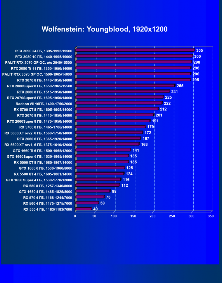 | 09 | RTX 2070 Super 8 ГБ, 1605—1950/14000 | 1350 | 338 | 40 000 |