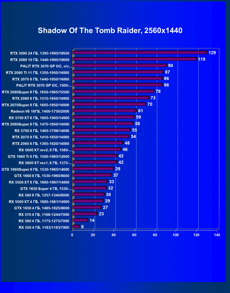 | 06 | RTX 2070 Super 8 ГБ, 1605—1950/14000 | 559 | 2236 | 40 000 |