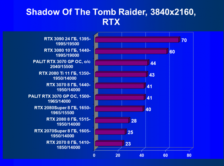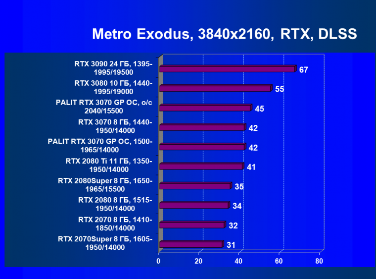 Таким образом, GeForce RTX 3070 отлично подходит для игры в разрешении 4К, позволяя играть даже с RT, если одновременно включить DLSS. Ну а в разрешении 2.5К это решение позволяет играть с трассировкой лучей даже без DLSS!