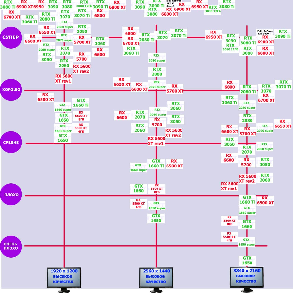 | 13 | RX 6900 XT 16 ГБ, 2250—2470/16000 | 91 | 834 | 92 000 |