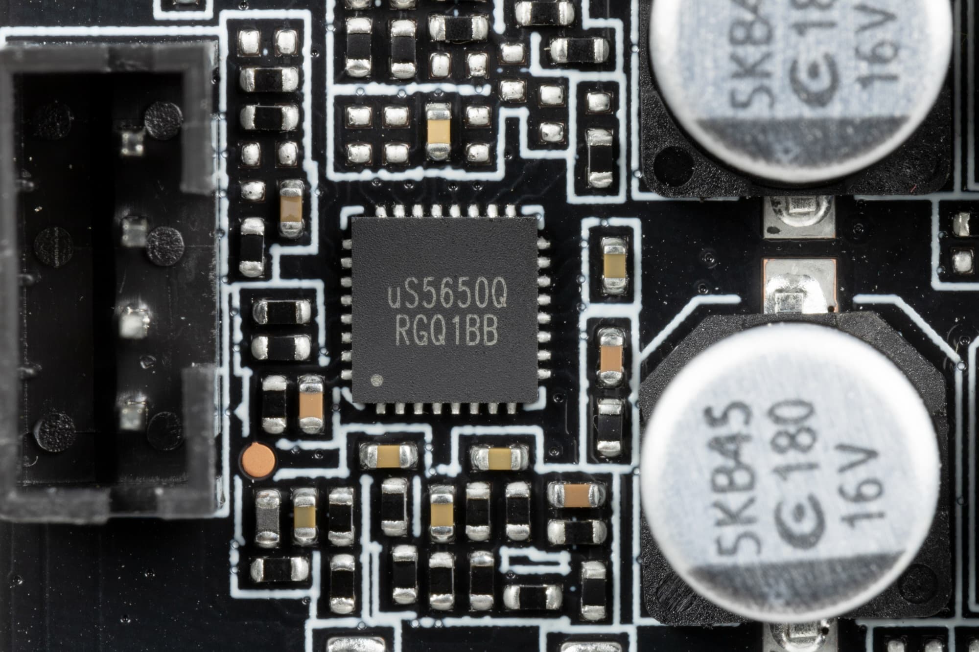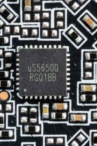 На обеих сторонах платы имеется по одному контроллеру uS5650Q (uPI Semiconductor), которые отвечают за мониторинг карты (отслеживание напряжений и температуры).
