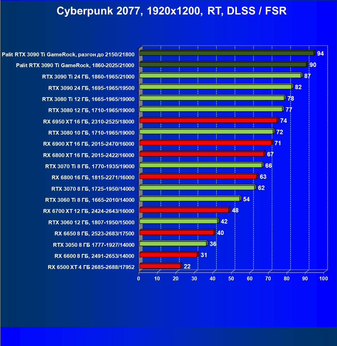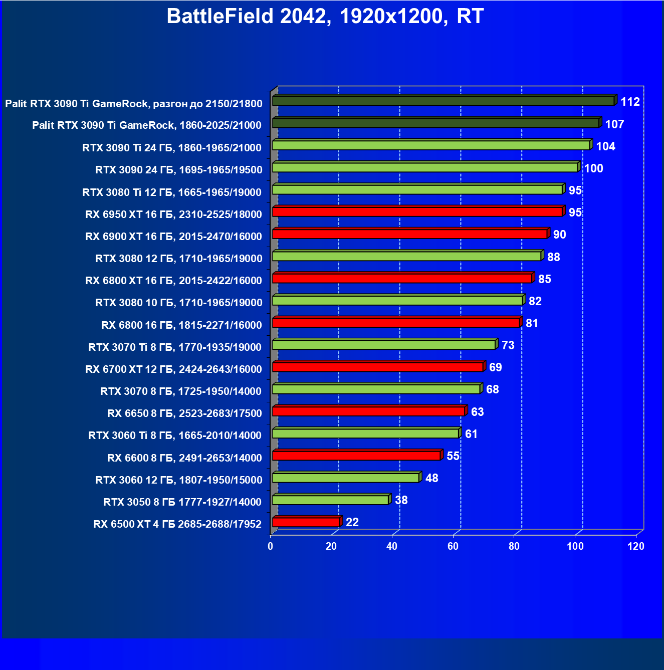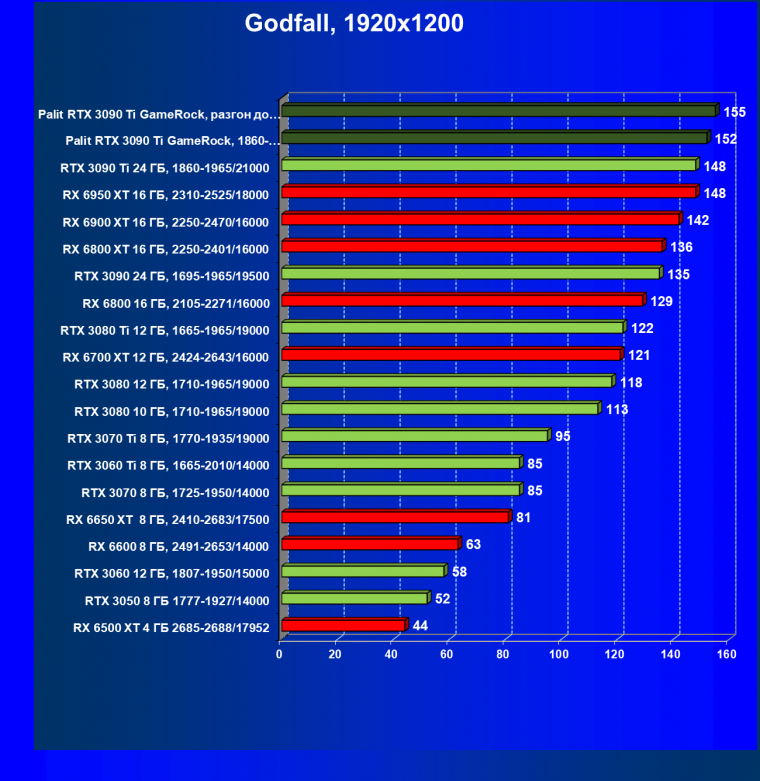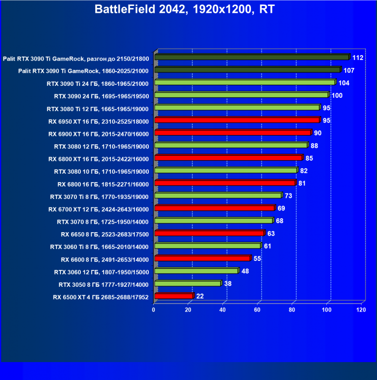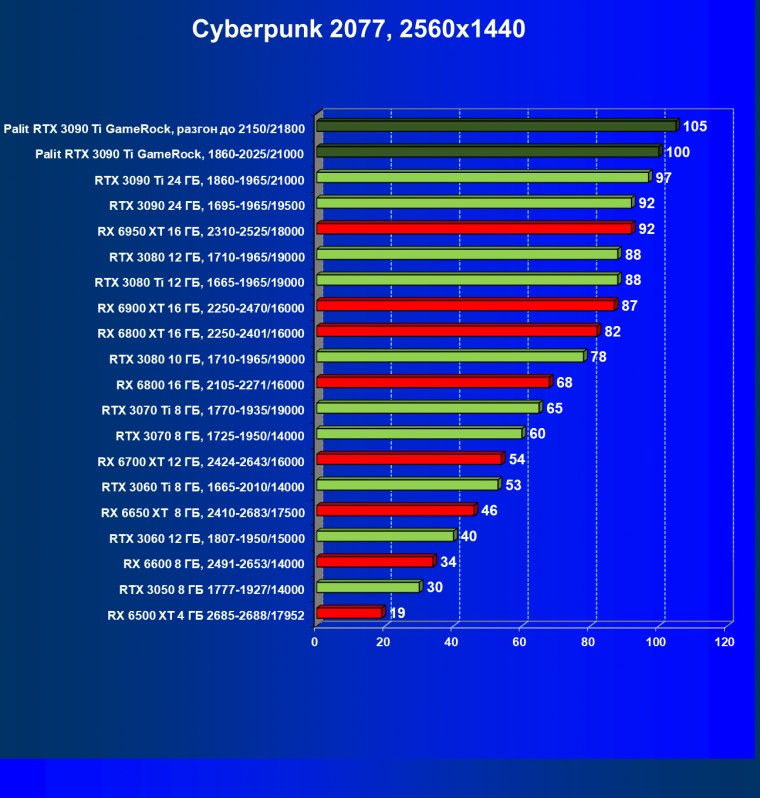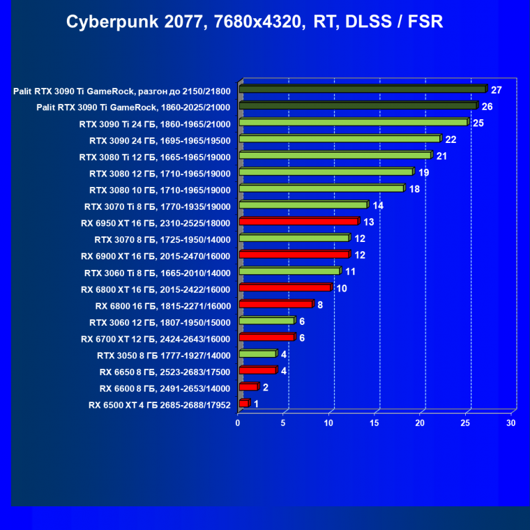 | 16 | Palit RTX 3090 Ti GameRock, 1860—2025/21000 | 83 | 1222 | 147 000 |