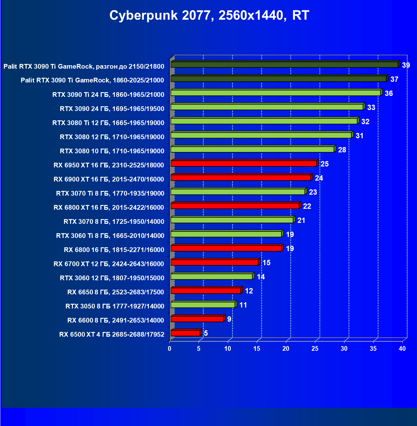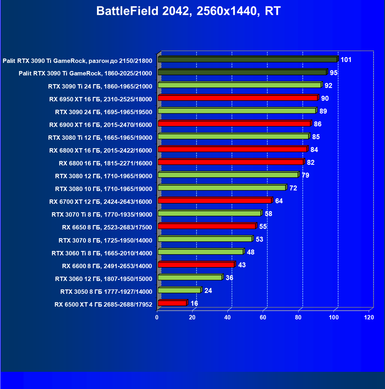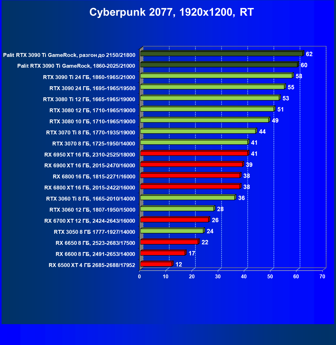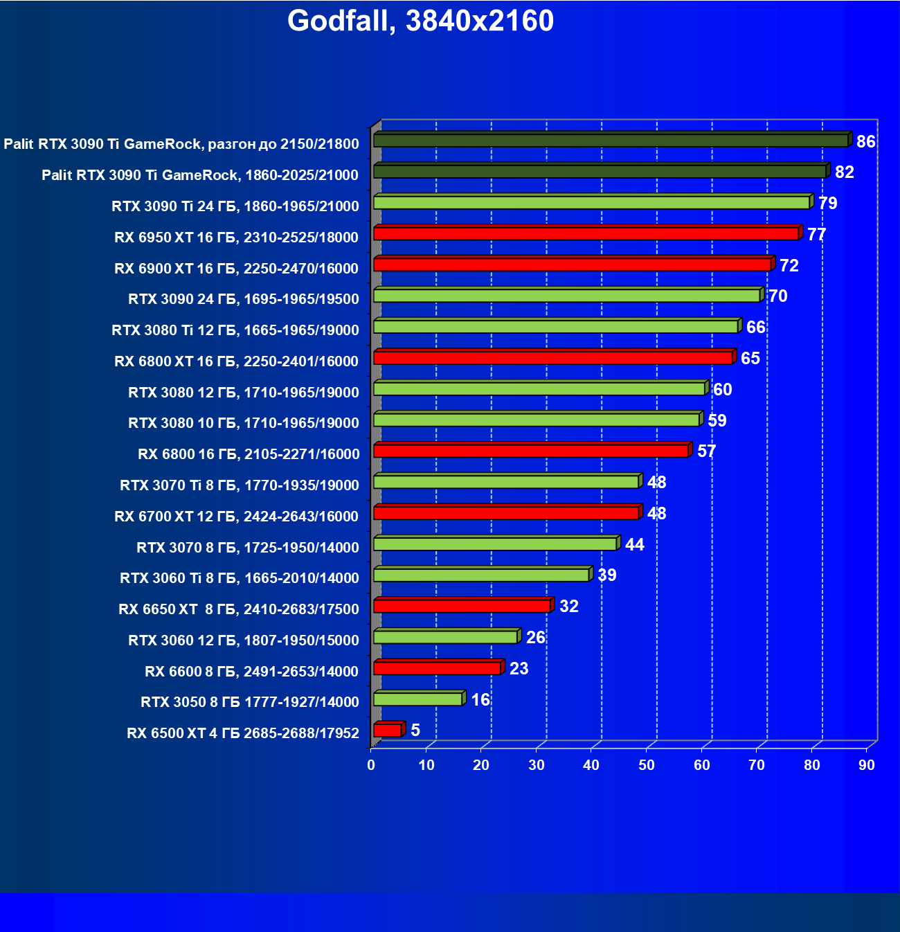 | 16 | Palit RTX 3090 Ti GameRock, 1860—2025/21000 | 83 | 1222 | 147 000 |