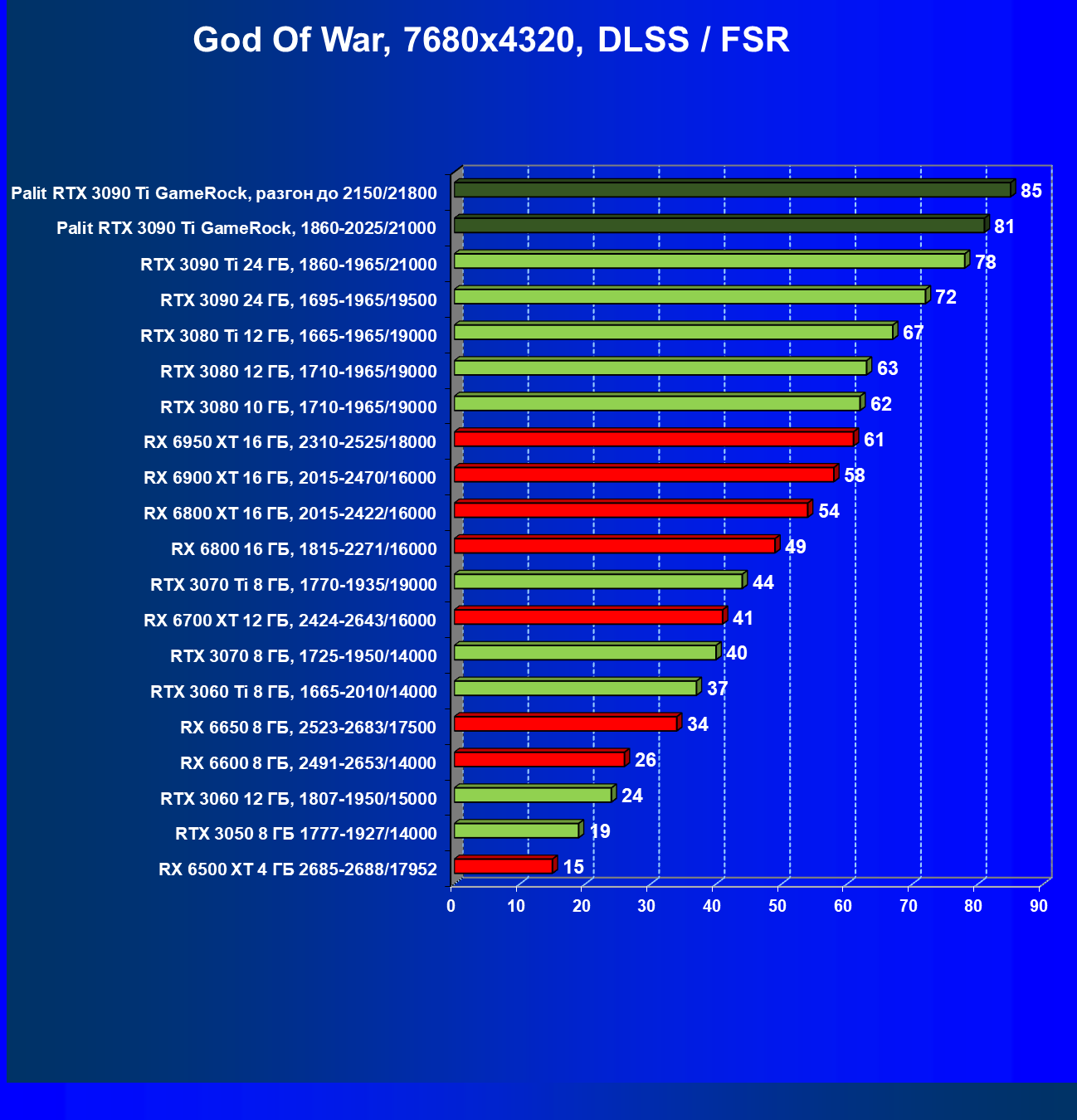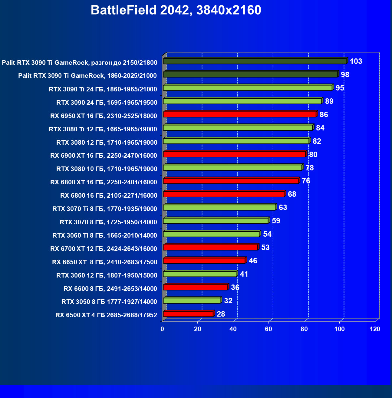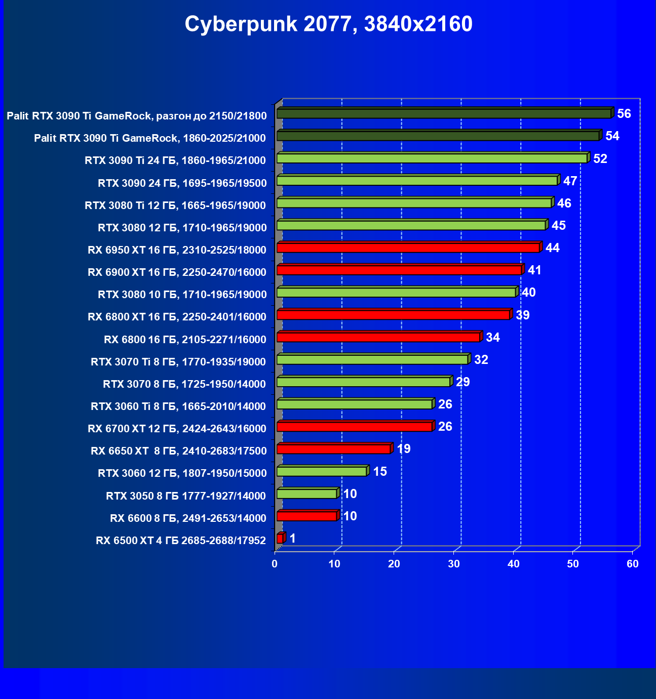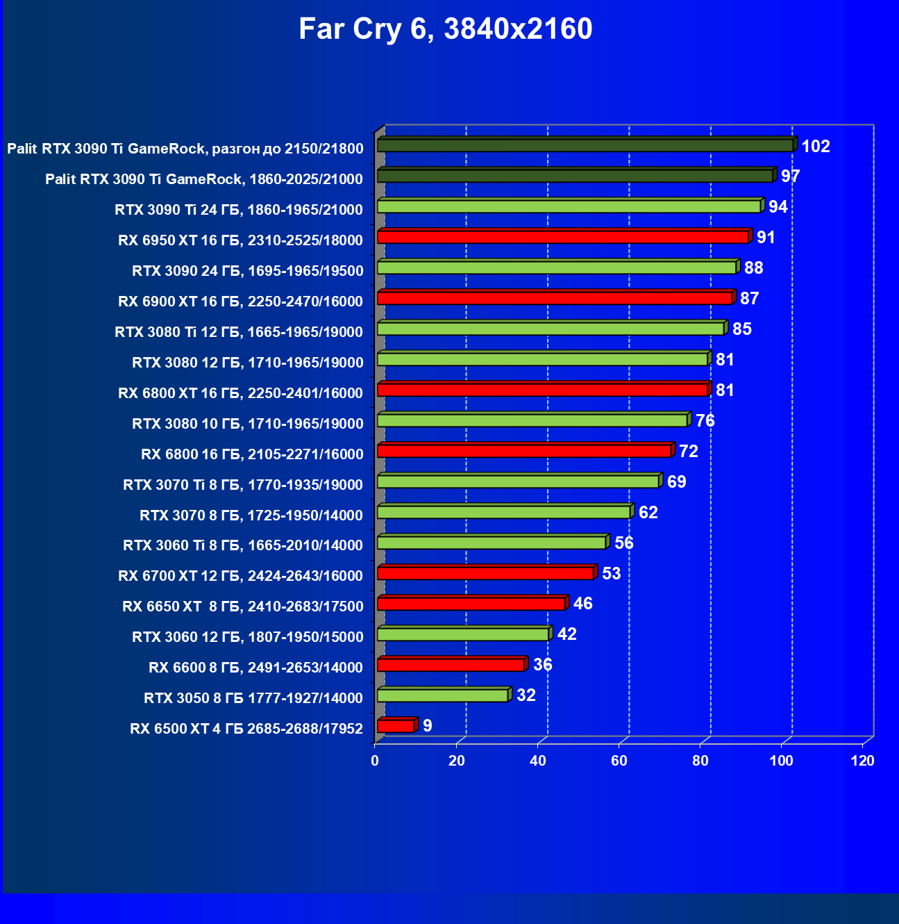 | 16 | Palit RTX 3090 Ti GameRock, 1860—2025/21000 | 83 | 1222 | 147 000 |