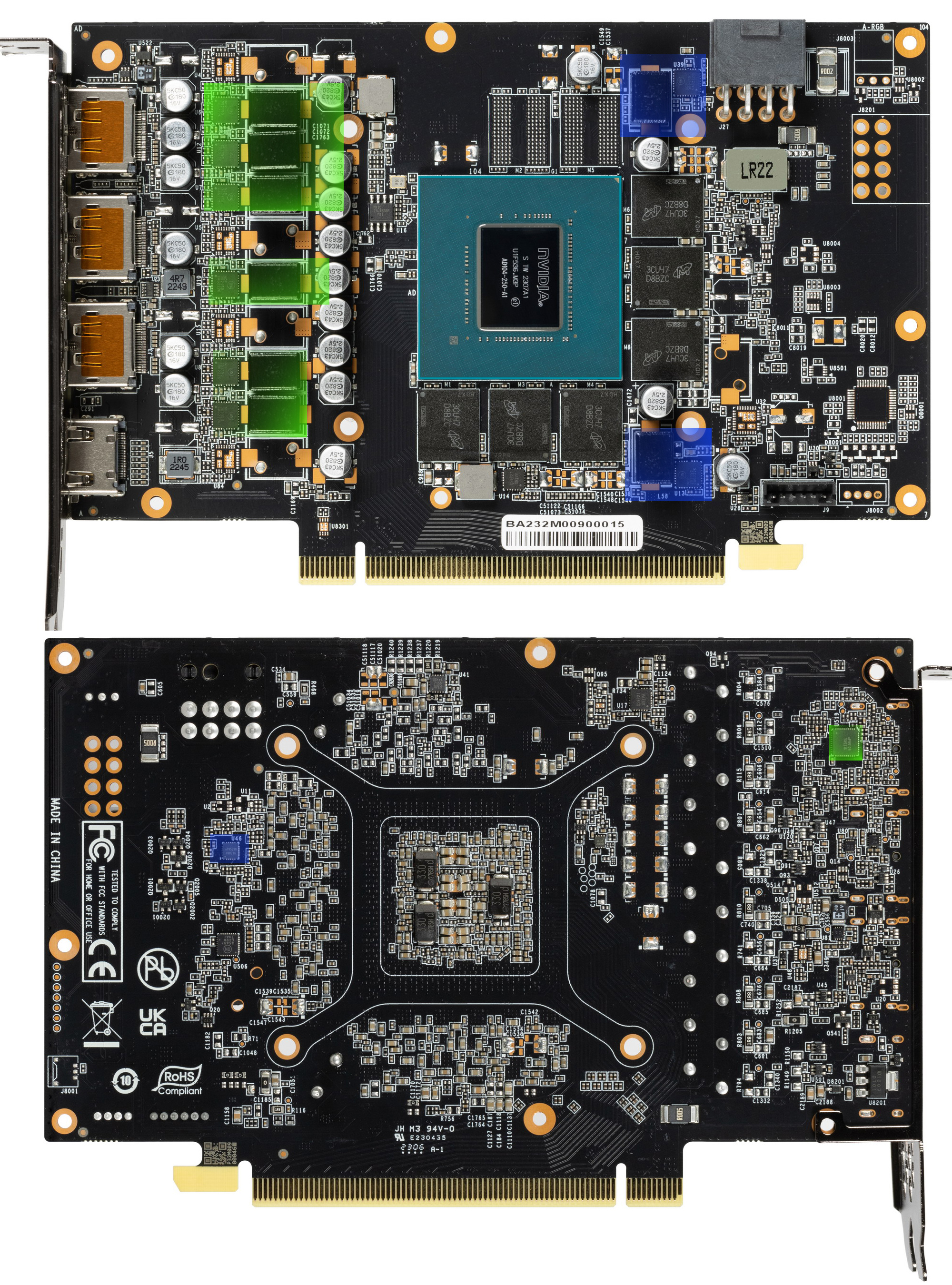 Мы сравниваем карту Palit с аналогичным продуктом на базе RTX 4070, но из более дешевой серии Dual. Ну и как мы видим, печатные платы у вышеуказанных карт полностью идентичны.