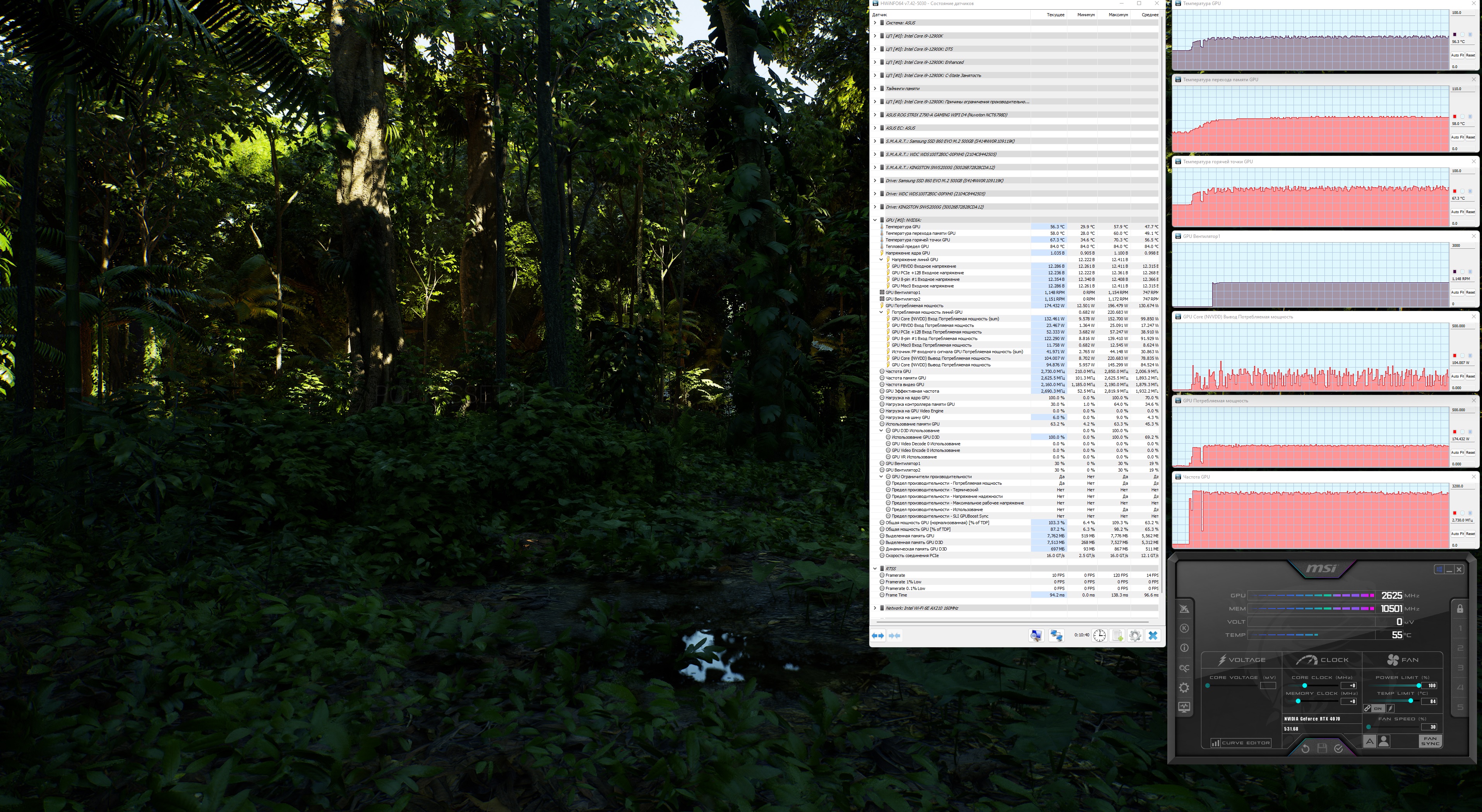 Я попробовал ручной разгон и получил максимальные частоты 3000/23000 МГц, что на 8,7% больше, чем максимальные референс-частоты, и это обеспечило прирост FPS в играх в среднем почти на 3,5% относительно референс-показателей (при этом не представляется возможным поднять лимит потребления выше 100%), энергопотребление карты почти не изменилось.