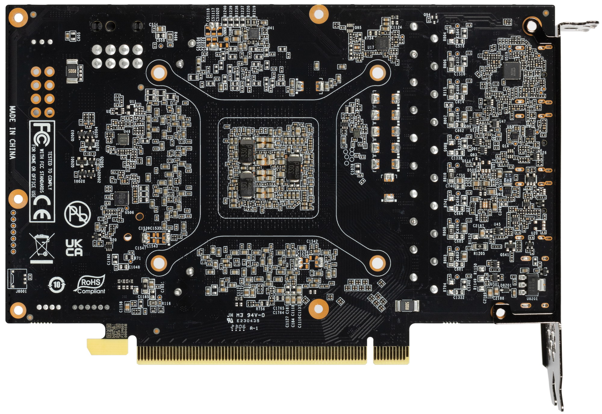 Как и все новинки из серии GeForce RTX 40, карта требует относительно мощного блока питания и просторного корпуса с хорошим продувом, она имеет длину 329 мм и занимает 4 слота. Карта может потреблять примерно до 200 Вт, она имеет один 8-контактный разъем питания. Система охлаждения тихая, но при этом очень эффективная. Карта не имеет возможности повысить лимит потребления для эффективного ручного разгона. Также стоит отметить отсутствие подсветки и фактическое отсутствие комплекта поставки.
