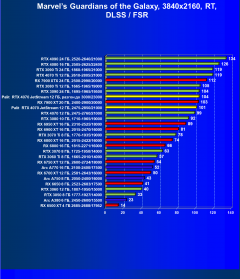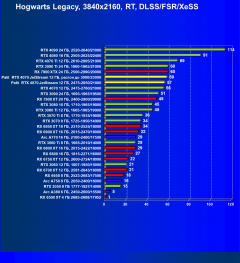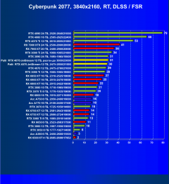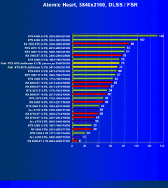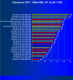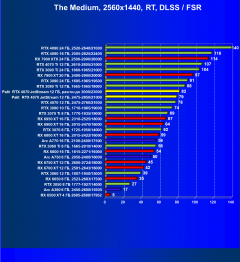 Результаты тестов со включенной аппаратной трассировкой лучей и/или DLSS/FSR в разрешениях 1920×1080, 2560×1440 и 3840×2160