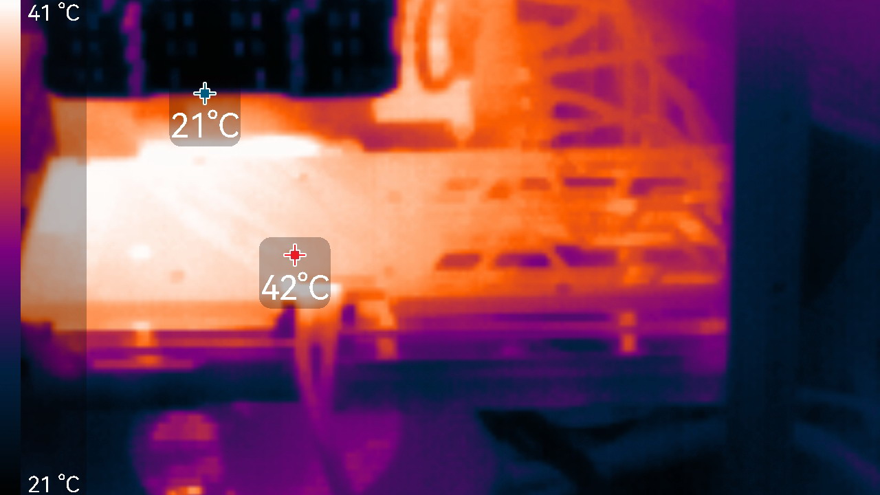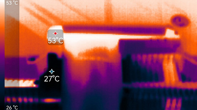 Максимальный нагрев наблюдался в центральной части PCB, а также около разъема питания.