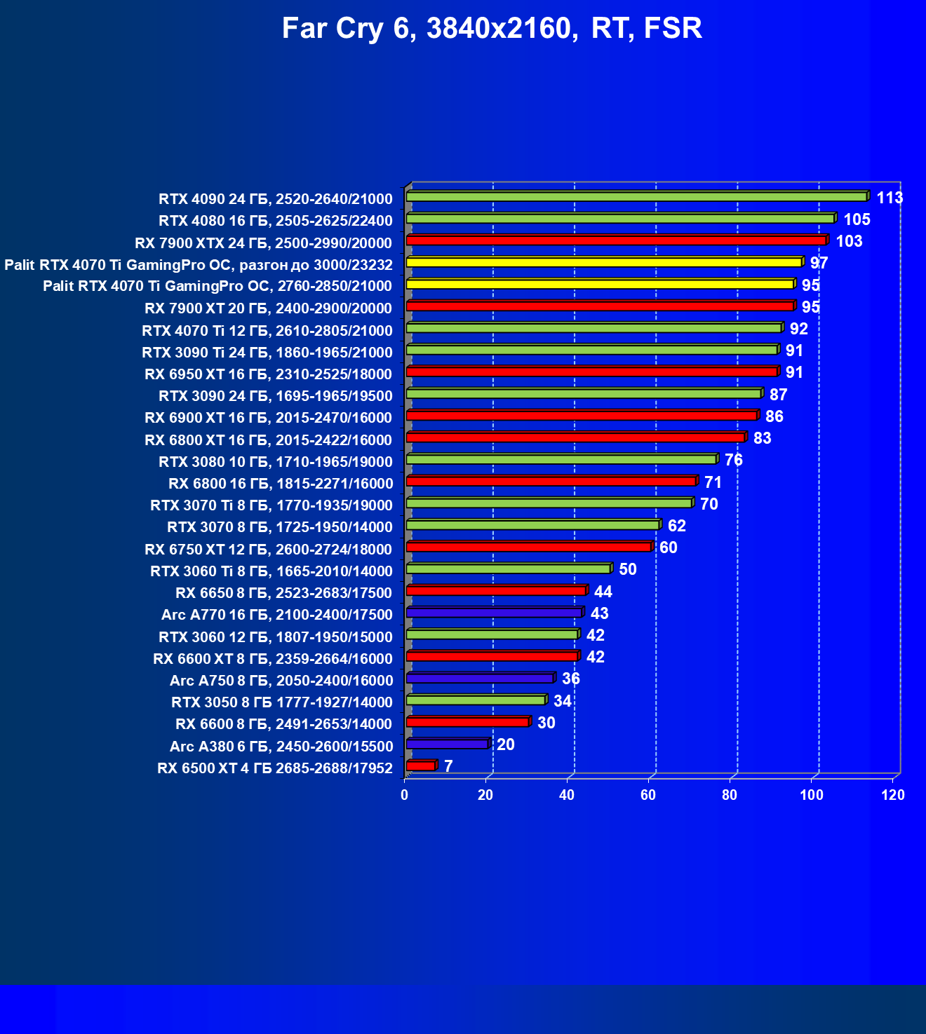 | 07 | RX 7900 XTX 24 ГБ, 2500—2990/20000 | 124 | 1201 | 97 000 |