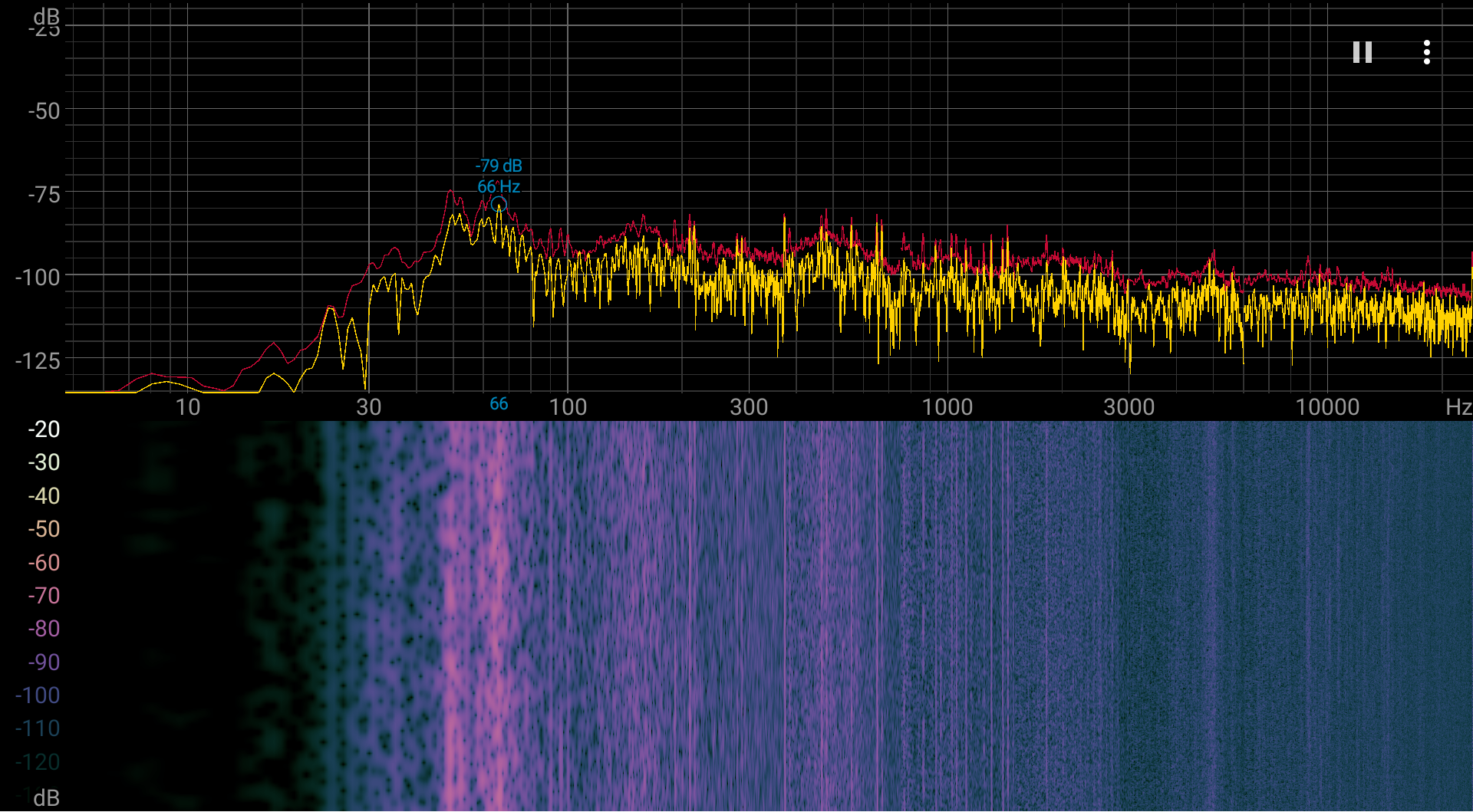 Спектрограмма шума достаточно ровная, выраженных пиков, которые могут вызывать раздражение, нет.