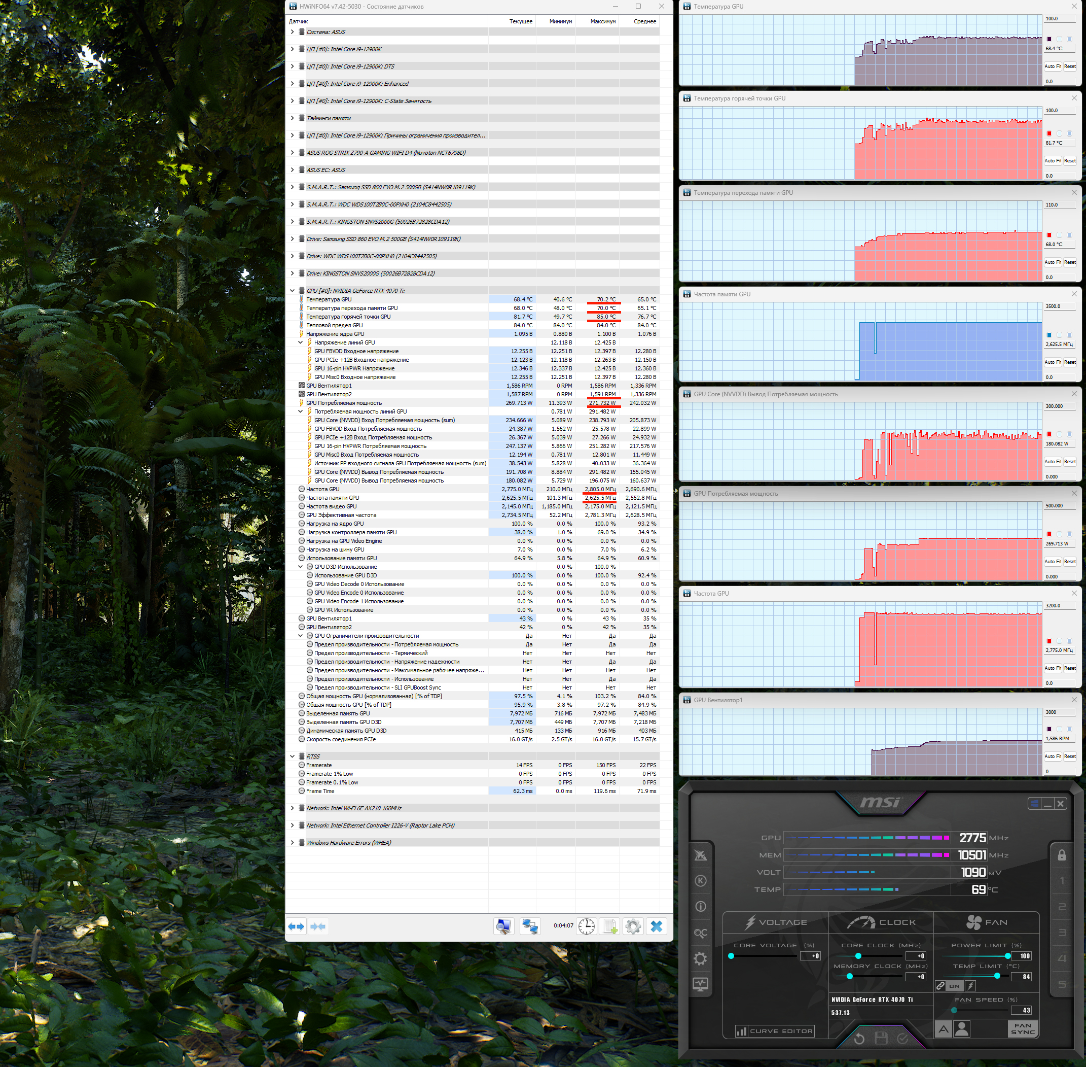 | 05 | RTX 3090 Ti 24 ГБ, 1860—1965/21000 | 967 | 84 | 115 000 |
