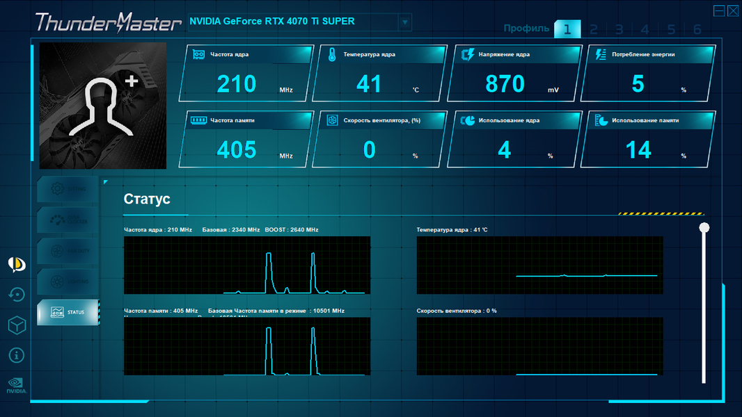 Управление работой карты обеспечивается с помощью фирменной утилиты ThunderMaster.