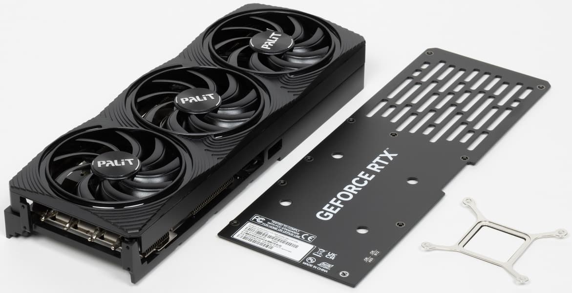 Карта Palit имеет 16-контактный разъем питания версии PCIe 5.0. Хотя в комплекте поставки имеется адаптер-переходник для подключения разъемов питания типа PCIe 2.0 (с 2 таких разъемов), лучше всё же использовать блоки питания стандарта ATX 3.0 с полноценной поддержкой питания PCIe 5.0 (с кабелем 12VHPWR). Карта может понравиться владельцам ПК, не приветствующих подсветку.