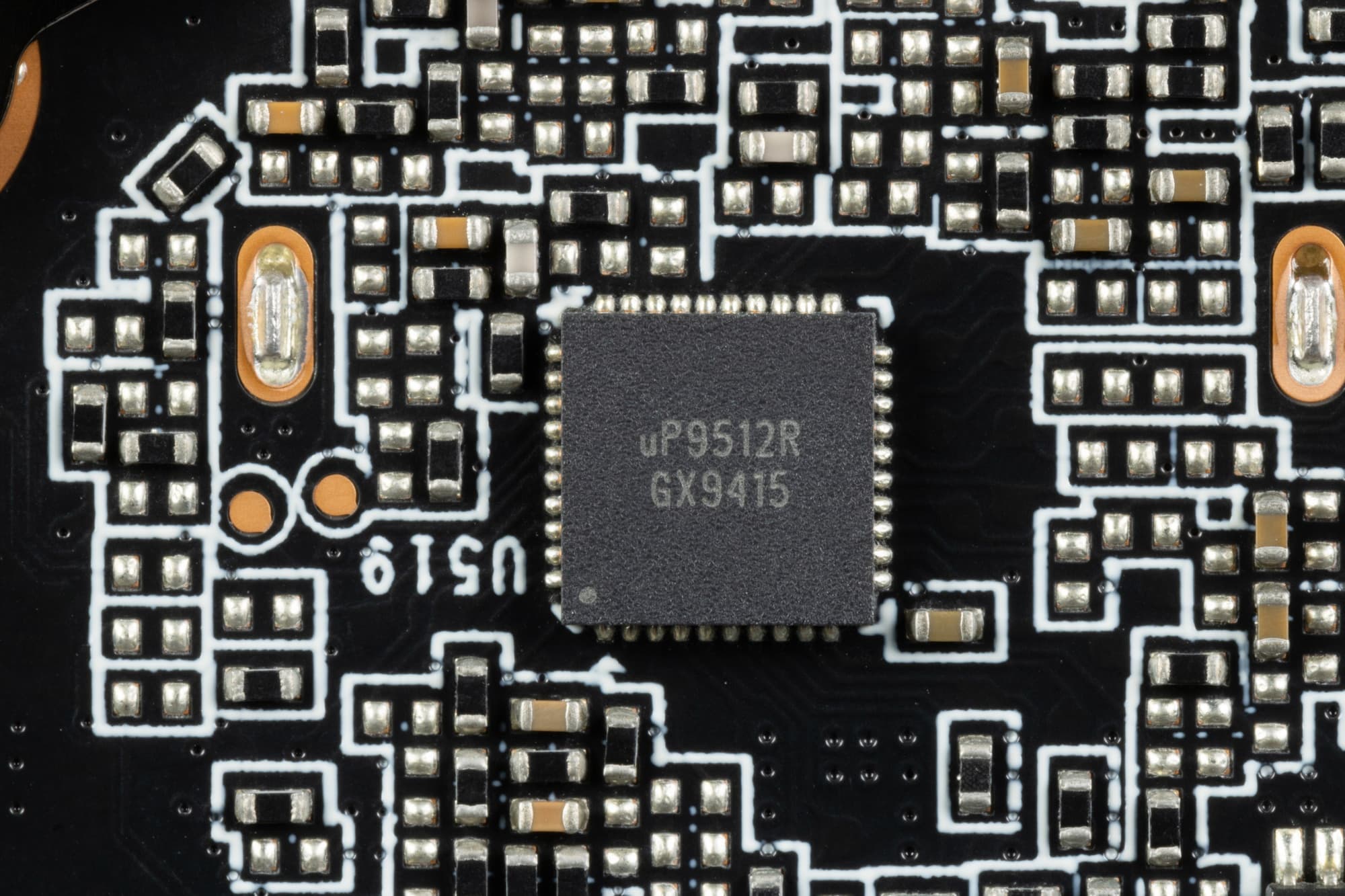 9 фазами питания ядра управляет ШИМ-контроллер uP9512R (uPI Semiconductor). Он рассчитан максимум на 12 фаз.