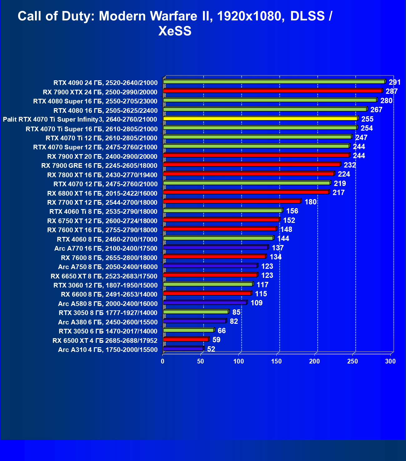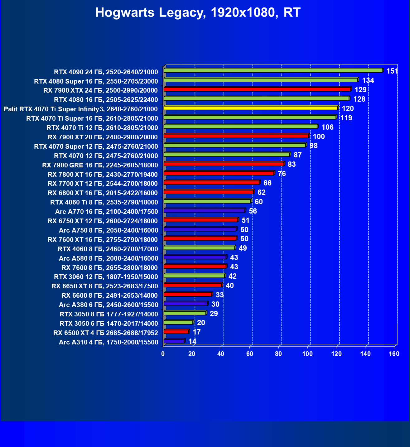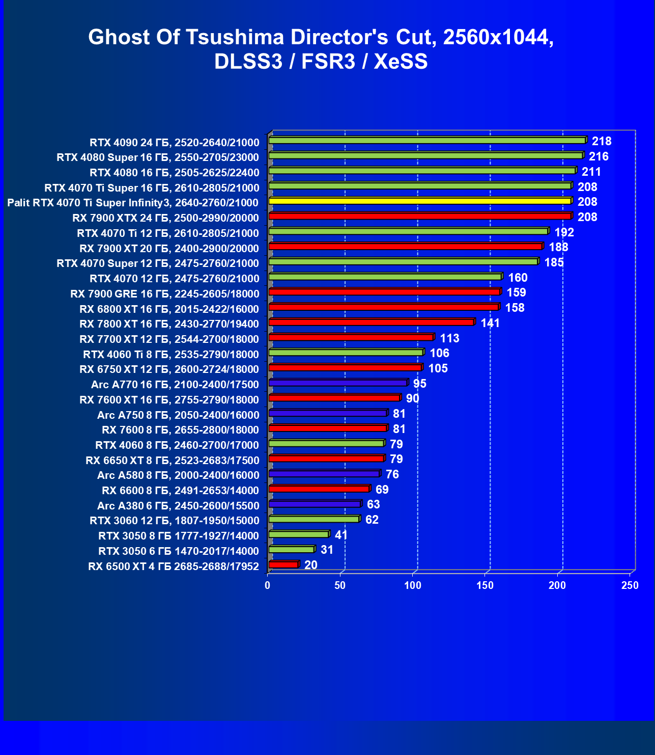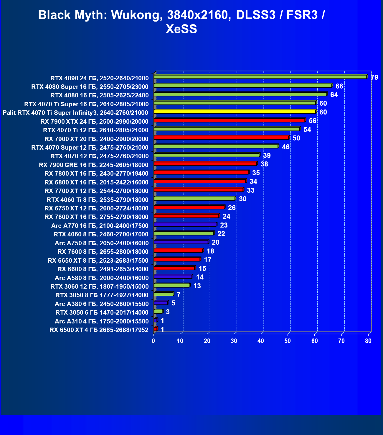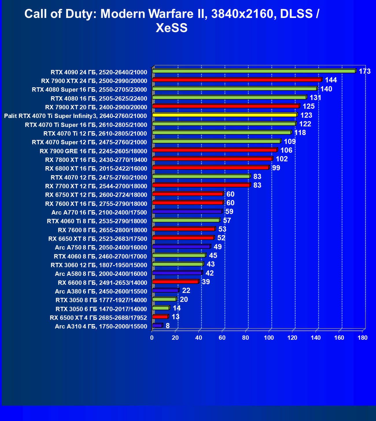 | 03 | Palit RTX 4070 Ti Super Infinity3, 2640—2760/21000 | 640 | 6011 | 94 000 |
