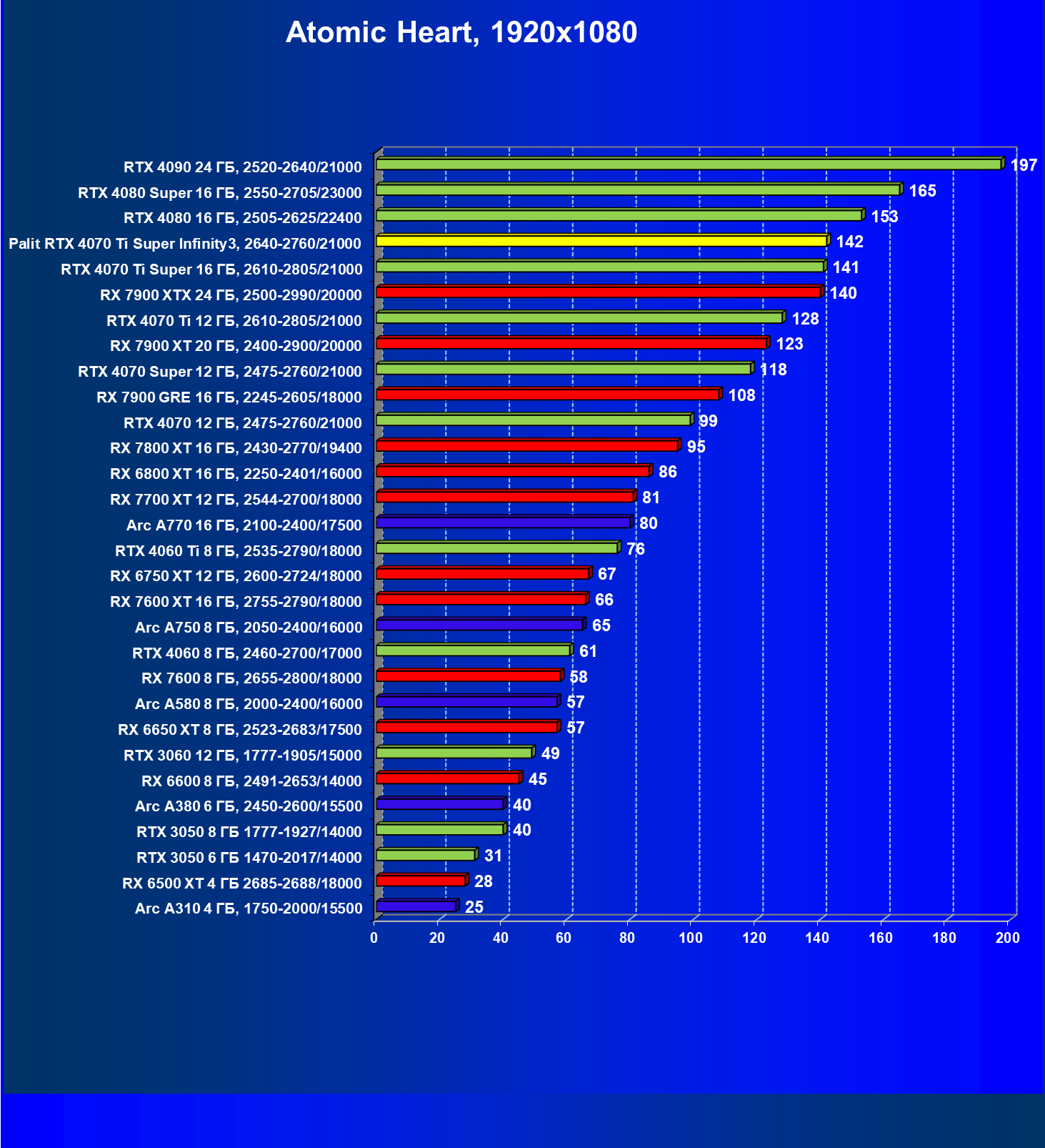 | 06 | Palit RTX 4070 Ti Super Infinity3, 2640—2760/21000 | 3519 | 374 | 94 000 |
