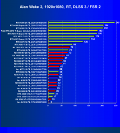 Результаты тестов со включенной аппаратной трассировкой лучей и/или DLSS/FSR/XeSS в разрешениях 1920×1080, 2560×1440 и 3840×2160