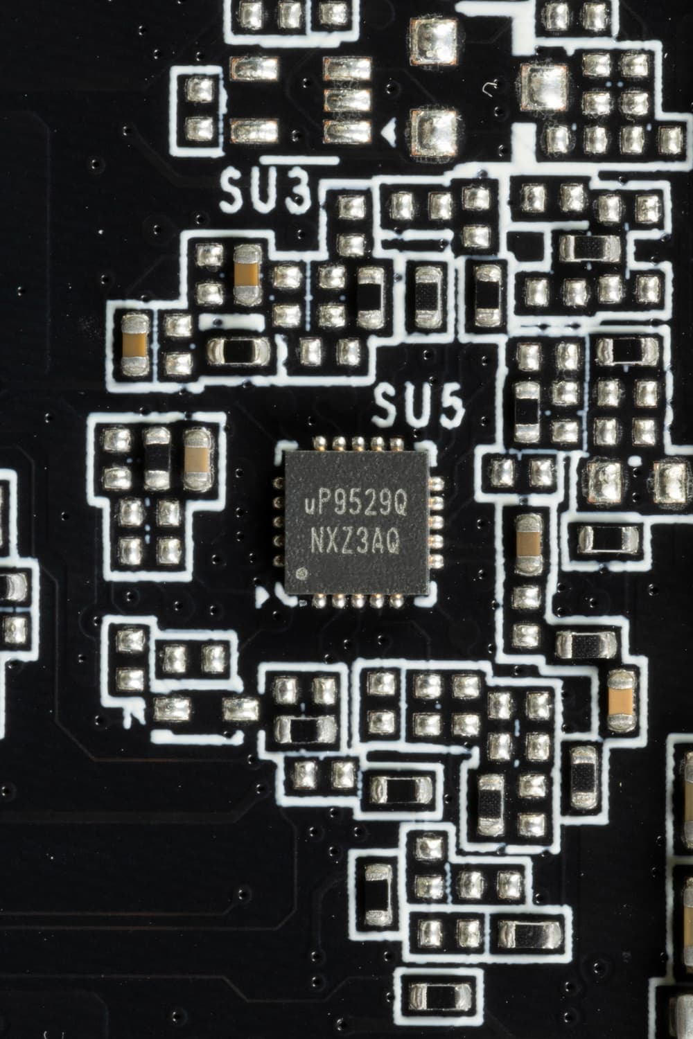 Питанием микросхем памяти управляет ШИМ-контроллер uP9529Q (uPI Semiconductor).
