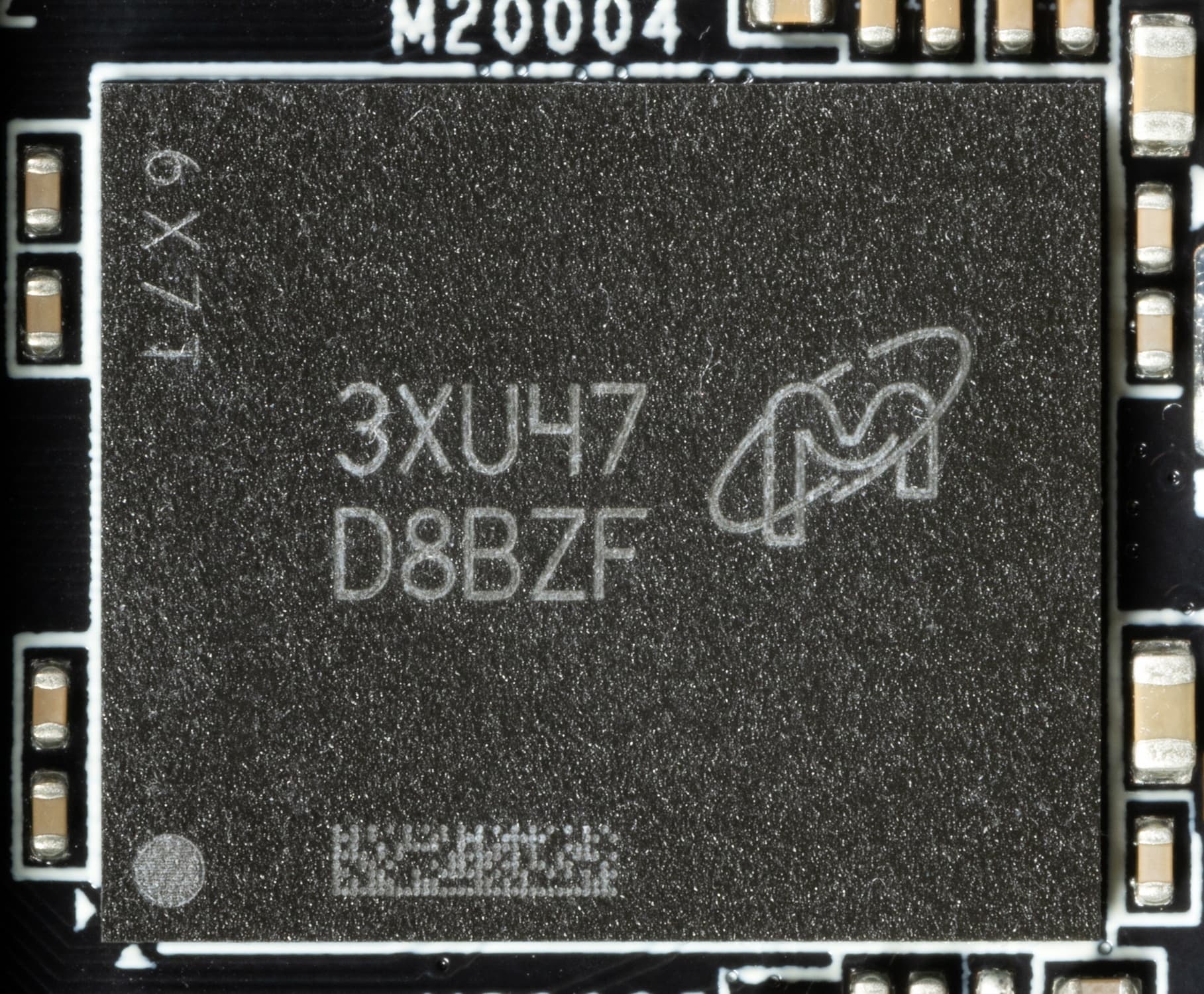 Карта имеет 16 ГБ памяти GDDR6X SDRAM, размещенной в 8 микросхемах по 16 Гбит на лицевой стороне PCB. Микросхемы памяти Micron (MT61K512M32KPA-24 / D8BZF) рассчитаны на номинальную частоту работы в 3000 (24000) МГц.