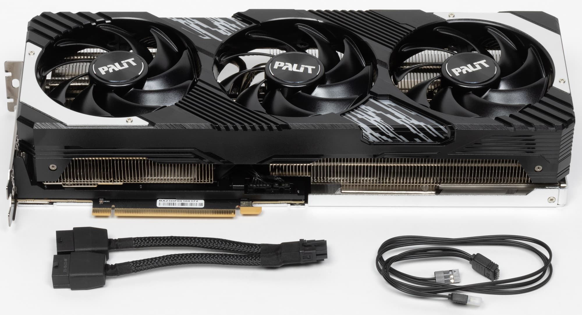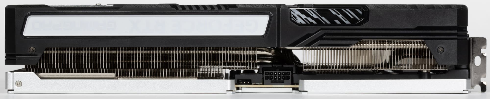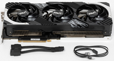 Карта Palit имеет 16-контактный разъем питания версии PCIe 5.0. Хотя в комплекте поставки имеется адаптер-переходник для подключения разъемов питания типа PCIe 2.0 (с 2 таких разъемов), лучше всё же использовать блоки питания стандарта ATX 3.0 с полноценной поддержкой питания PCIe 5.0 (с кабелем 12VHPWR). Имеющийся же переходник питания ни в коем случае нельзя изгибать непосредственно после 16-контактного разъема.