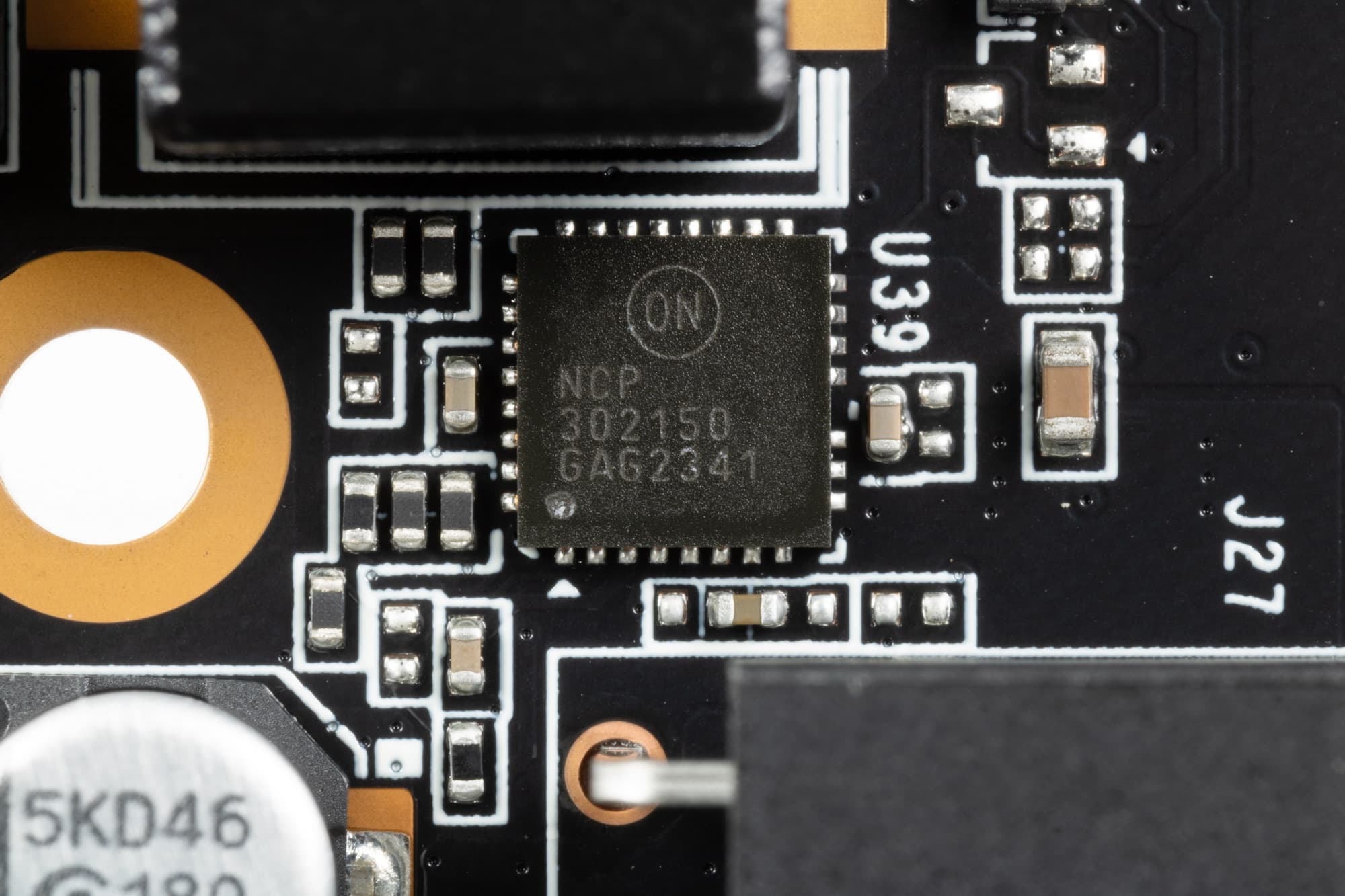В преобразователе питания используются транзисторные сборки DrMOS — в данном случае NCP302150 (On Semi), каждая из которых рассчитана максимально на 50 А.