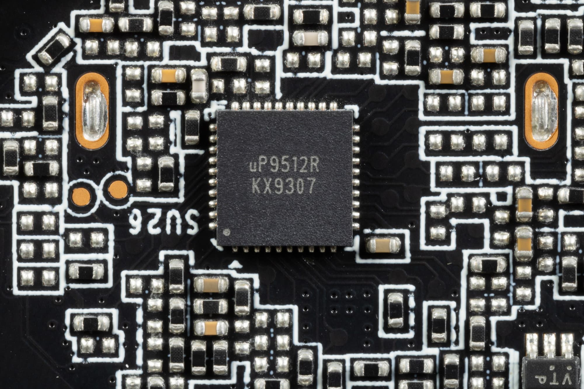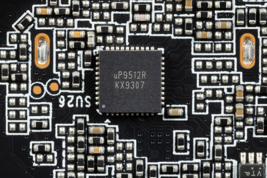 12 фазами питания ядра управляет ШИМ-контроллер uP9512R (uPI Semiconductor).