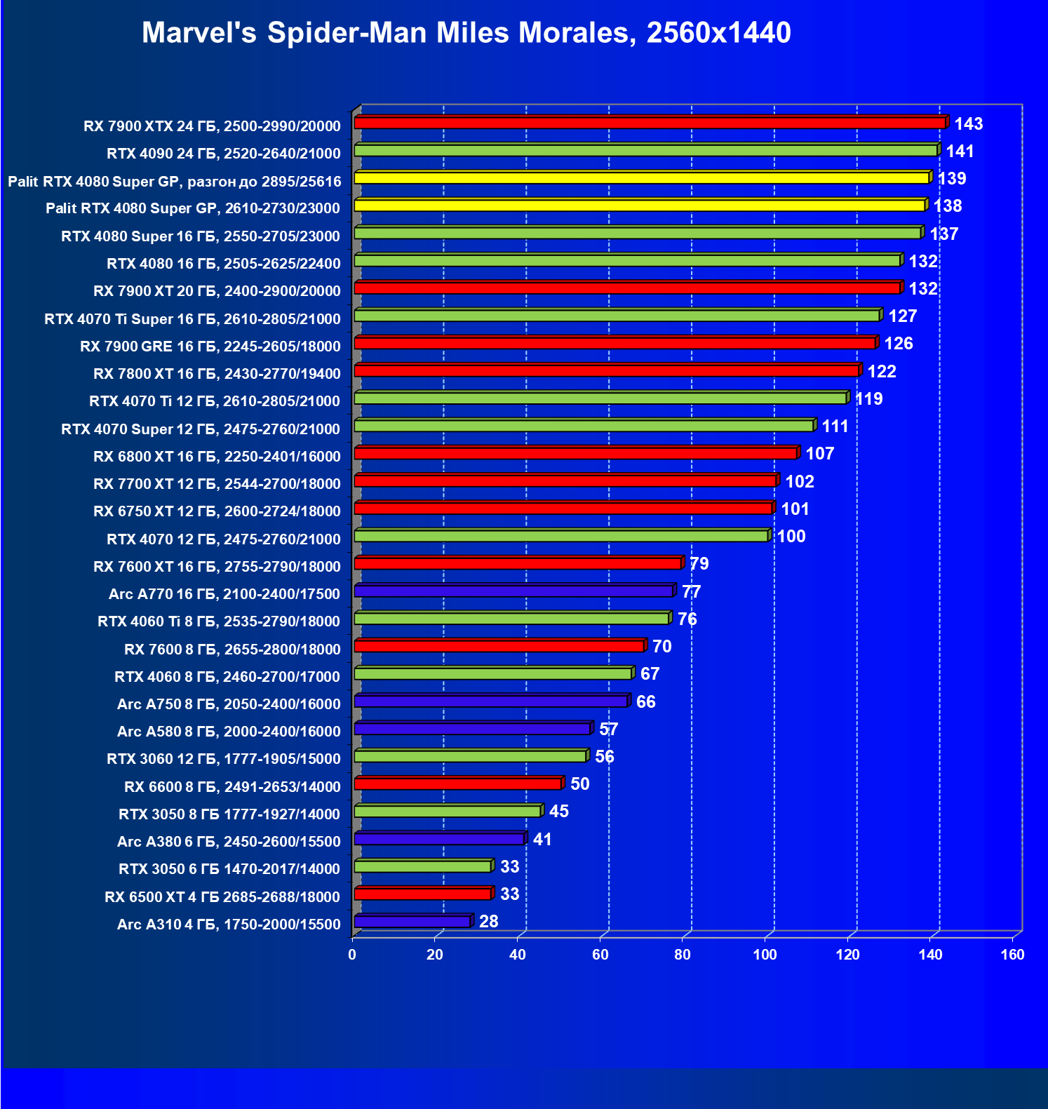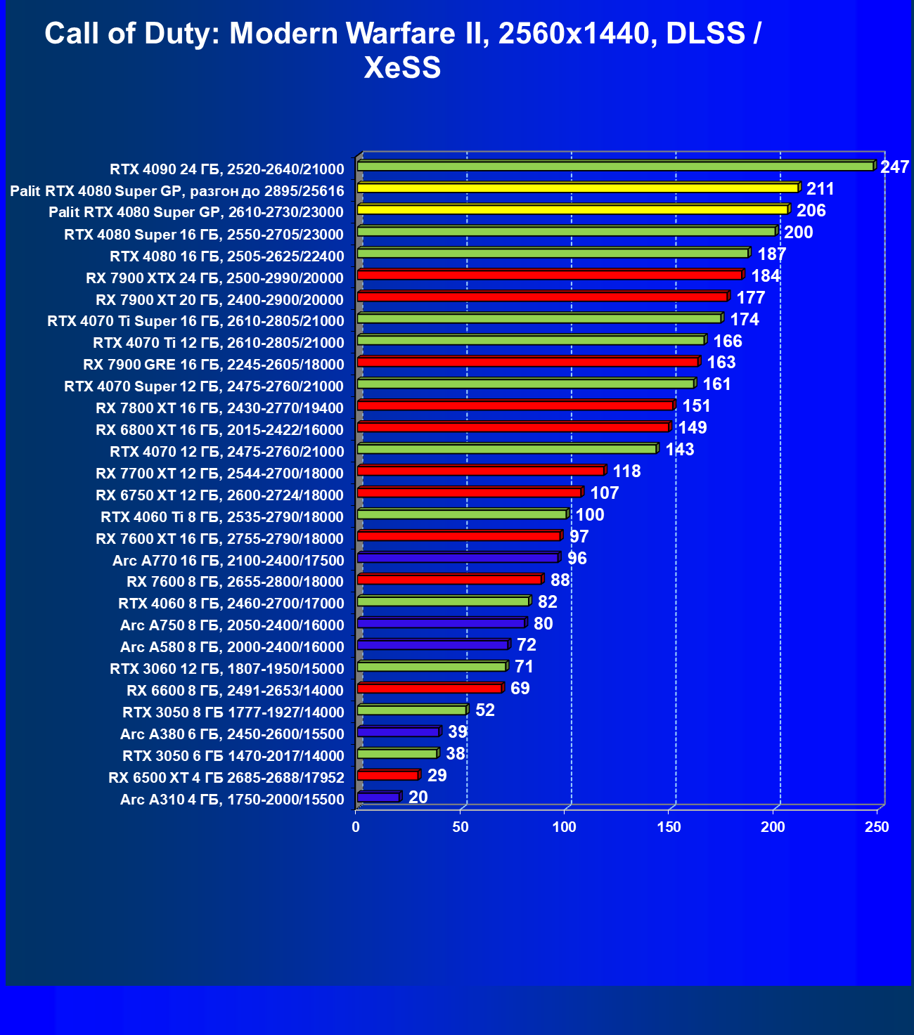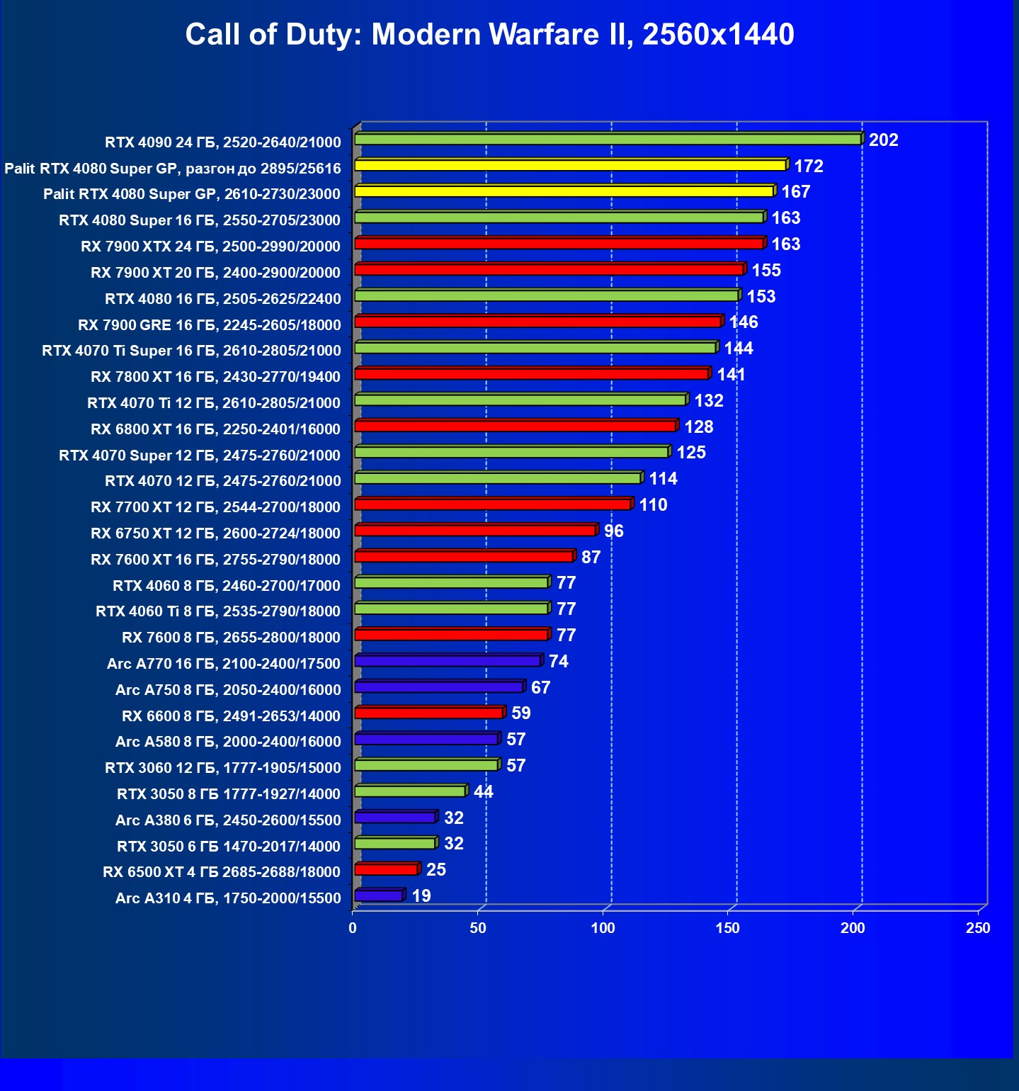 | 08 | RX 7900 XTX 24 ГБ, 2500—2990/20000 | 3473 | 302 | 115 000 |