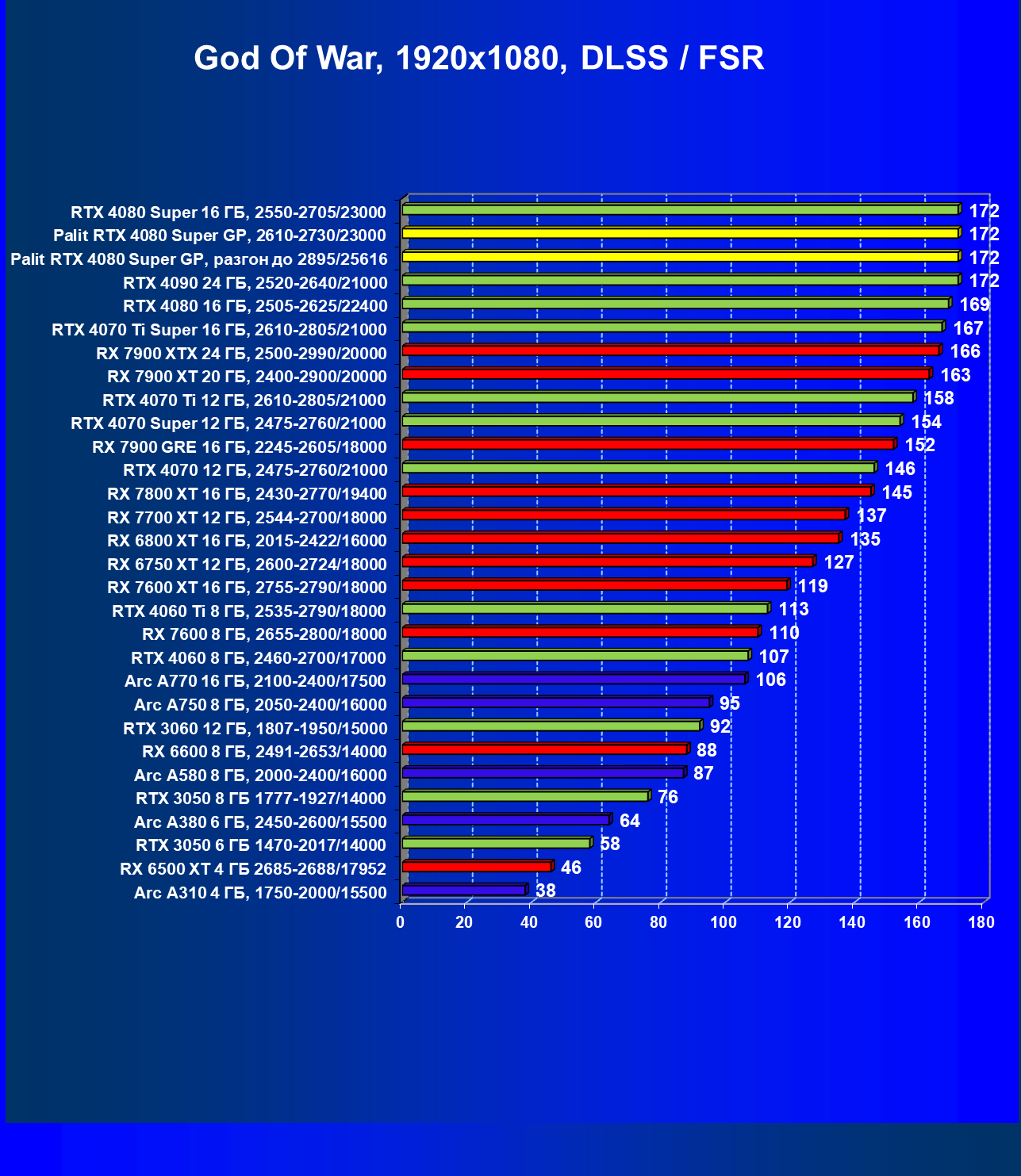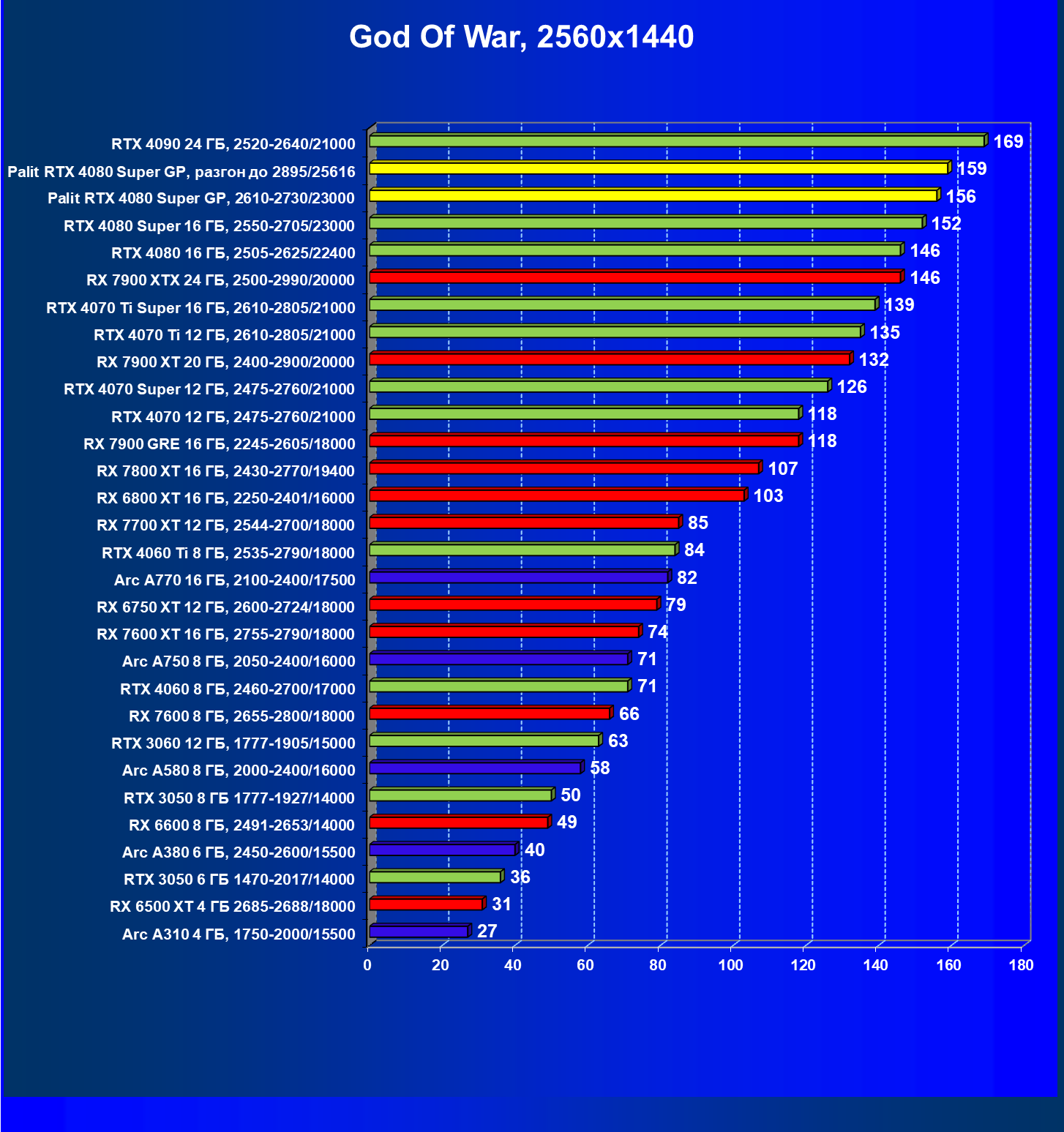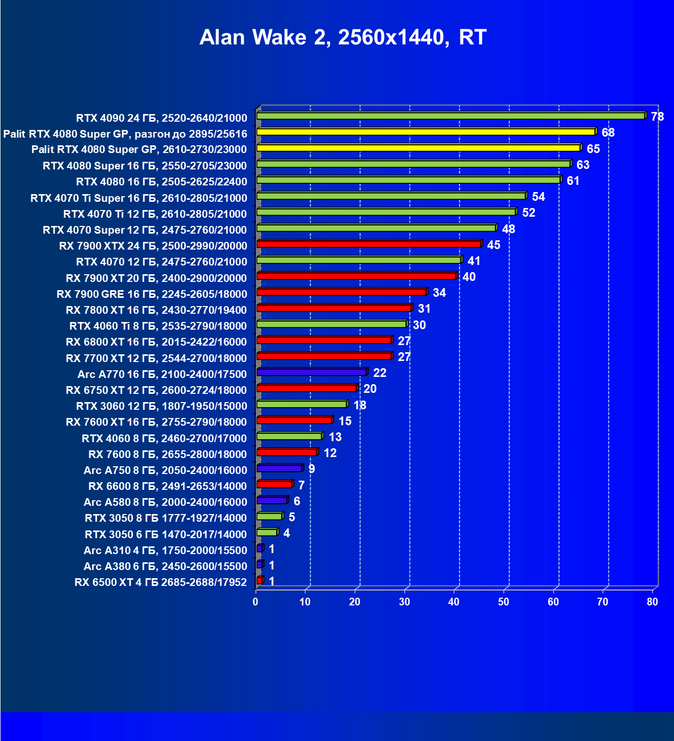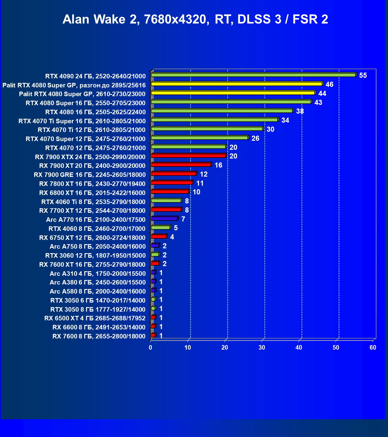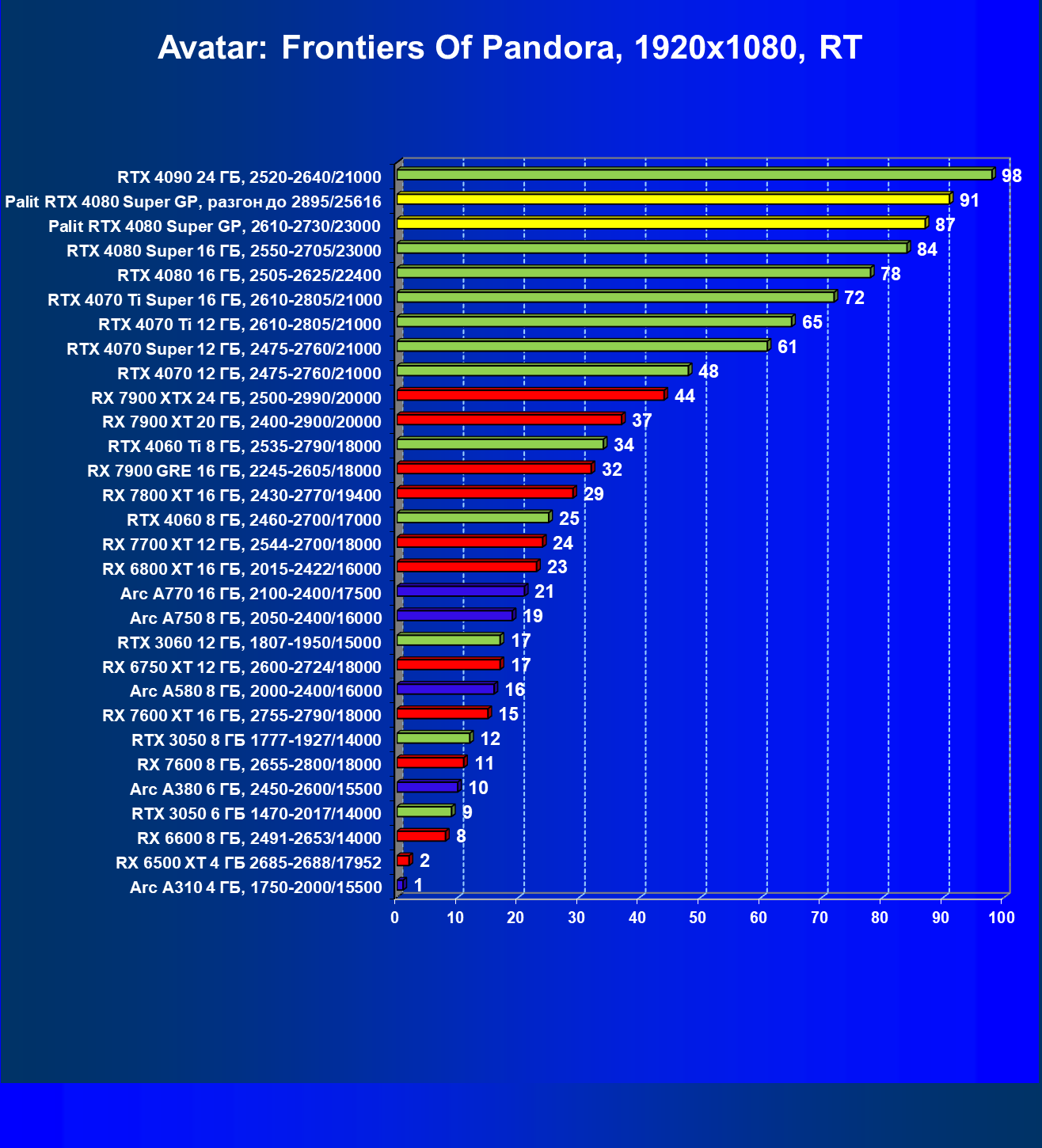 | 03 | Palit RTX 4080 Super GP, 2610—2730/23000 | 5230 | 436 | 120 000 |