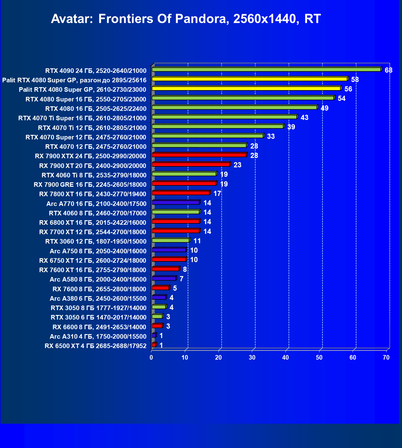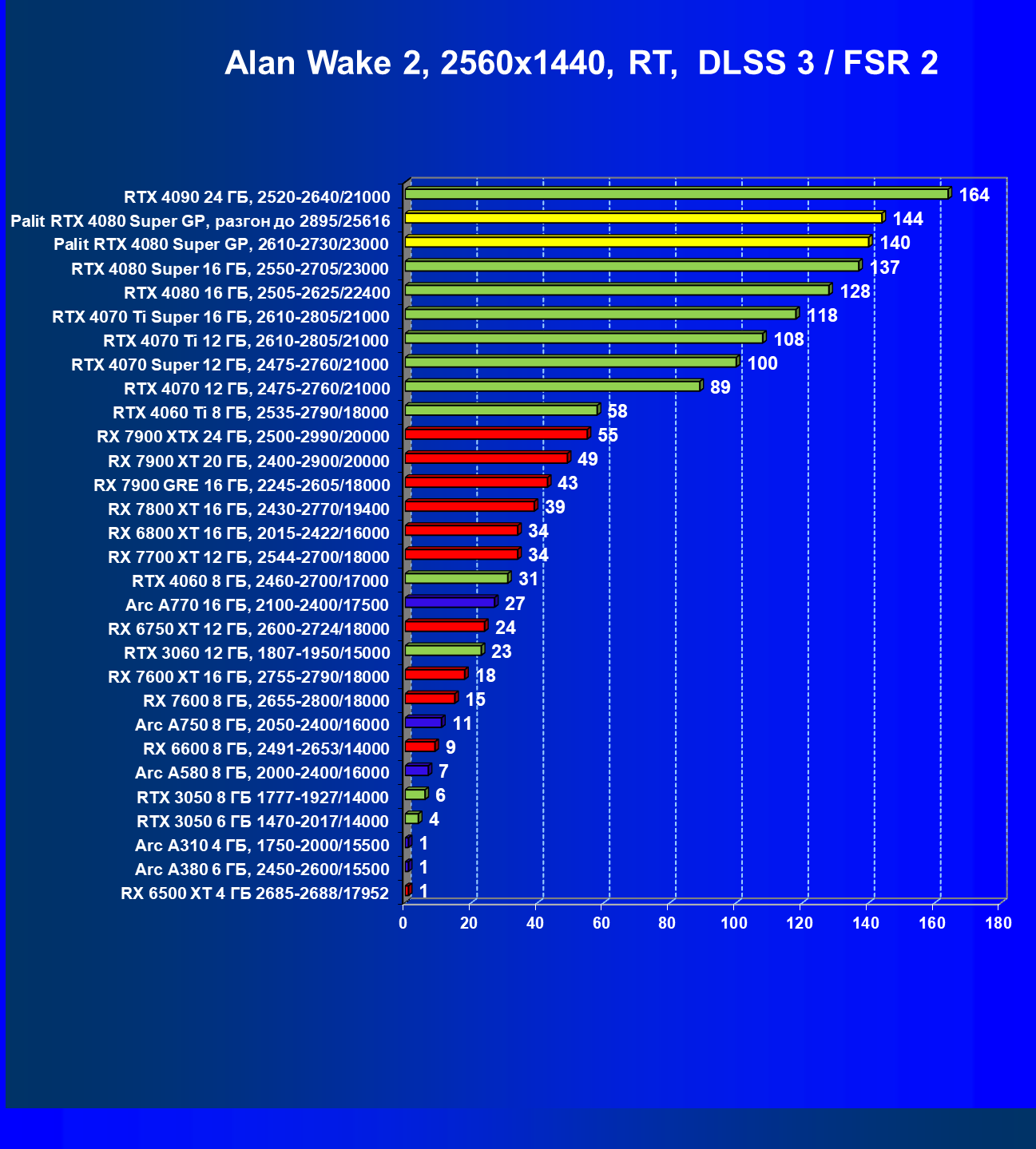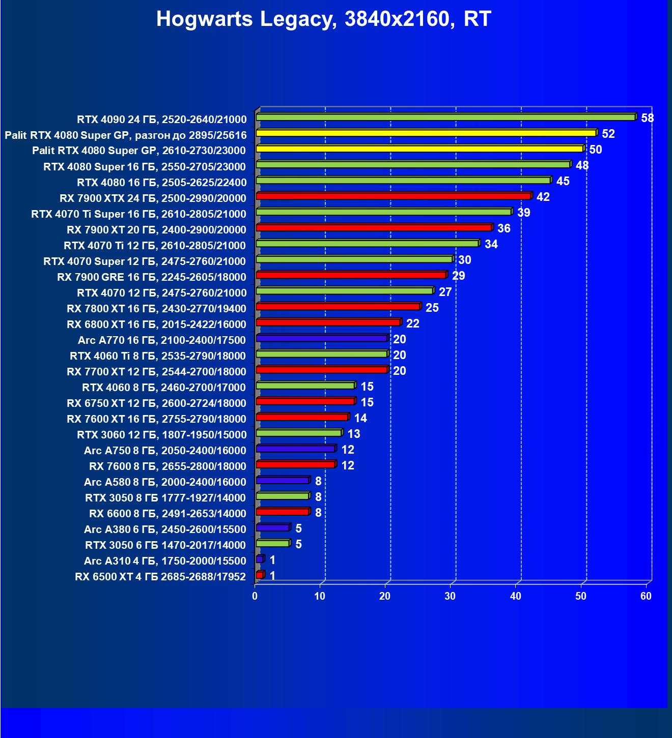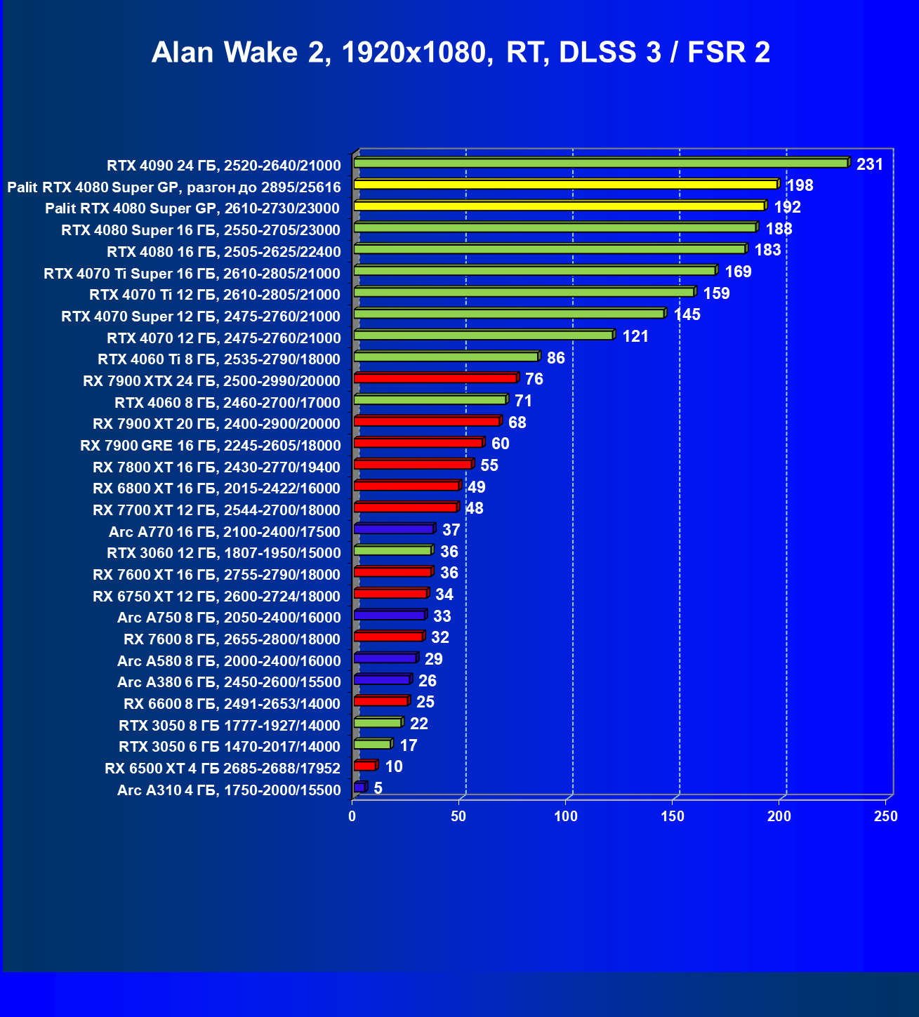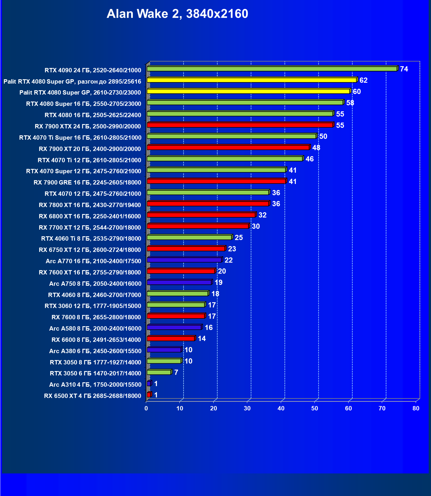 | 17 | Palit RTX 4080 Super GP, разгон до 2895/25616 | 249 | 2990 | 120 000 |