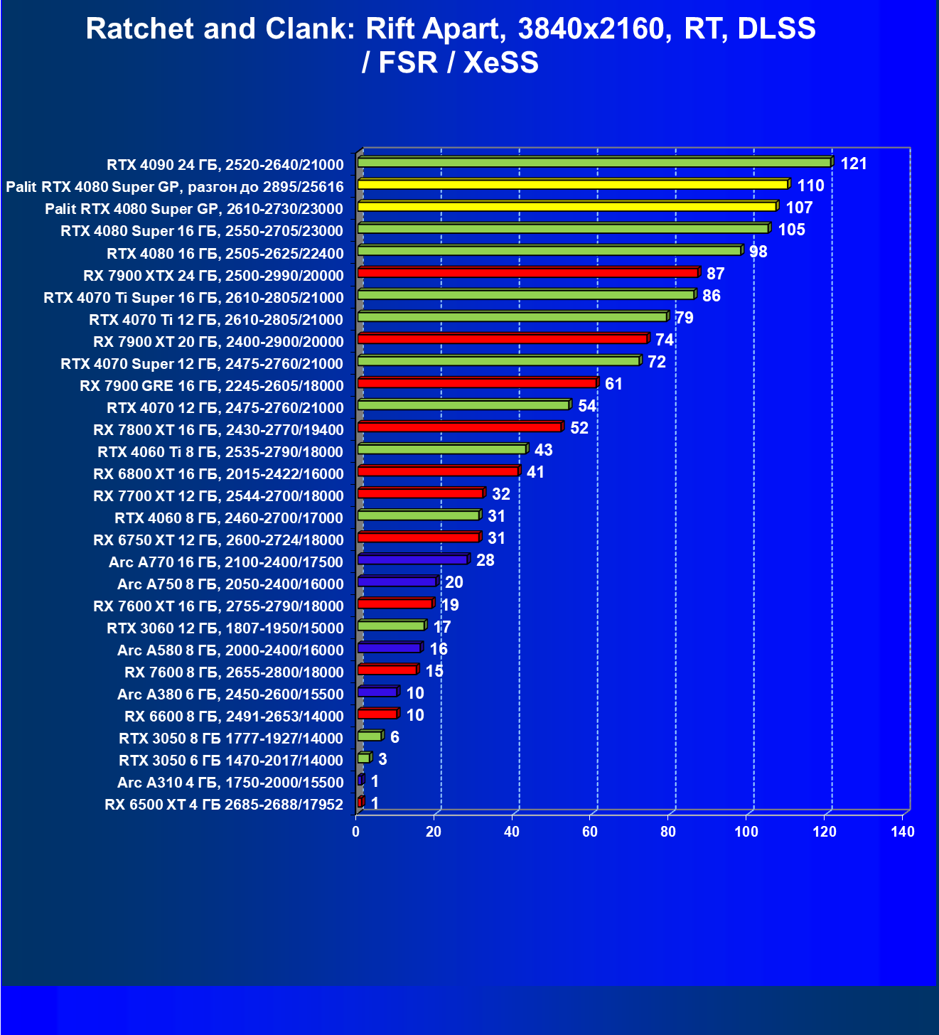 - Вариант рейтинга iXBT.com с включением RT/DLSS/FSR/XeSS