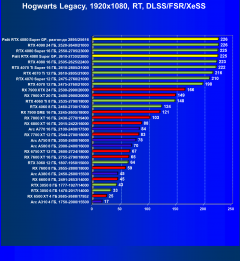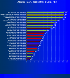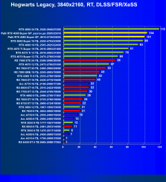 Результаты тестов со включенной аппаратной трассировкой лучей и/или DLSS/FSR/XeSS в разрешениях 1920×1080, 2560×1440 и 3840×2160
