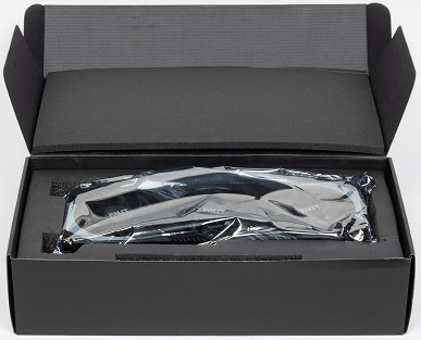 В комплекте поставки кроме самой карты имеются переходник питания и кабель для синхронизации подсветки с материнской платой (производитель не стал вкладывать в комплект разборную подставку).