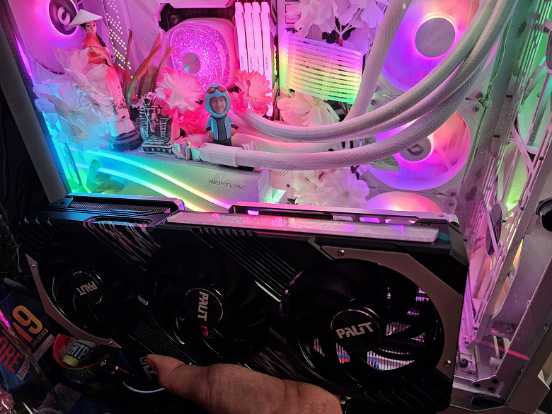 Питание на карту Palit подается через 16-контактный разъем стандарта PCIe 5.0 (12VHPWR).